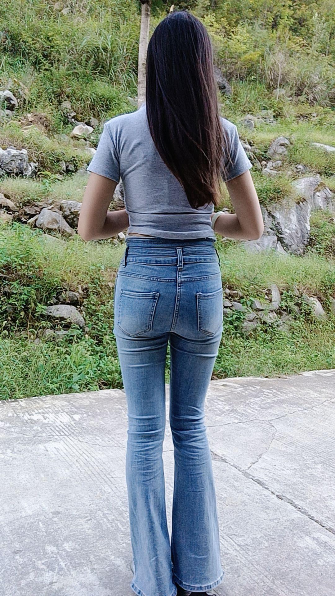 长发及腰的小姐姐 牛仔裤穿搭 好身材好气质