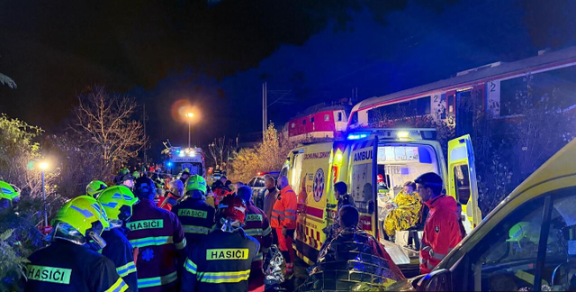 当地时间11月9日晚上,在距离斯洛伐克首都布拉迪斯拉发不远的佩齐诺克附近,两列火车发生相撞事故,有11人因重伤被送往医院,另有数十人轻伤。救援人员正在现场进行干预。
