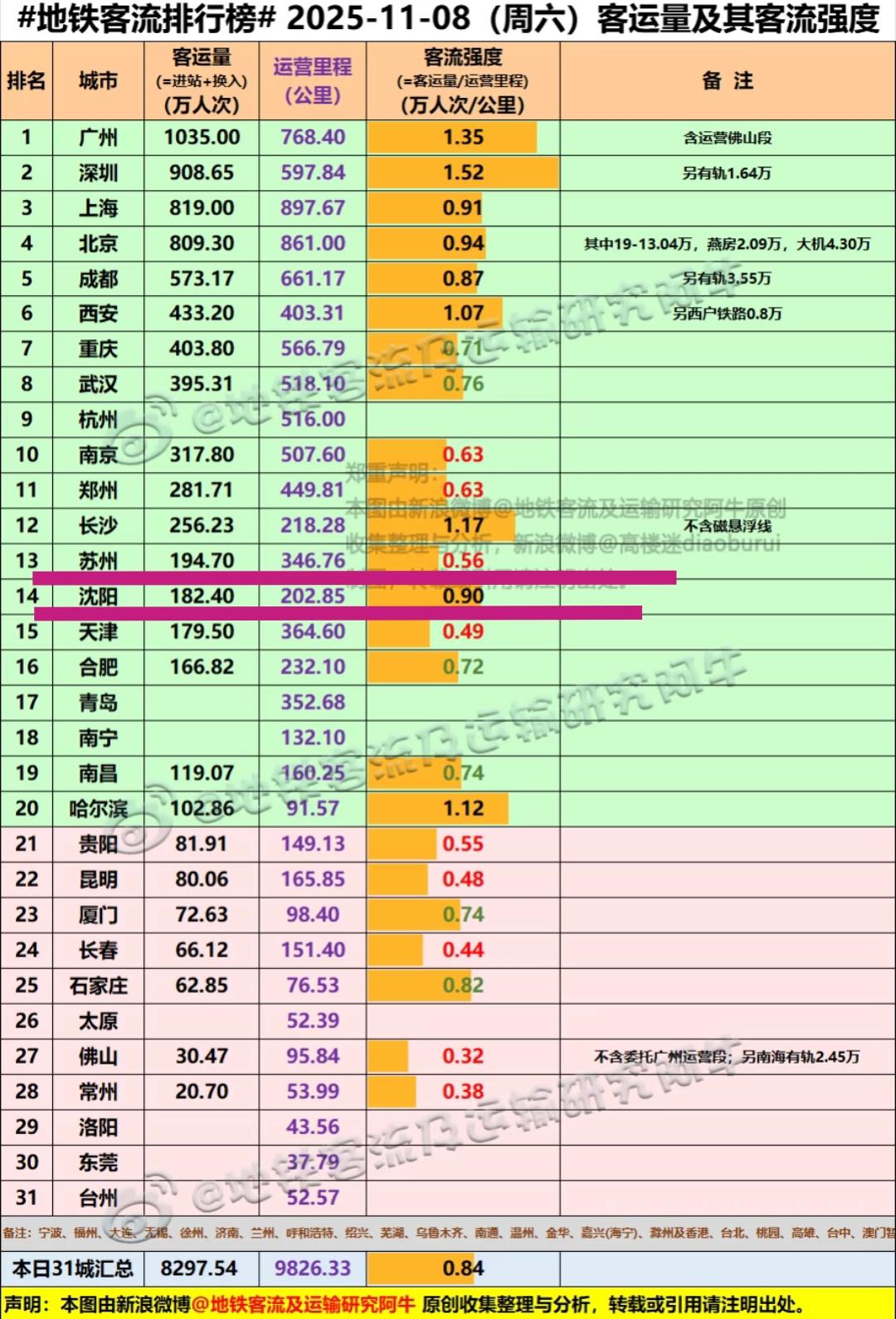 还是要恭喜苏州,地铁客流量终于反超天津与沈阳了,这就说明苏州对于地铁的需求量还是