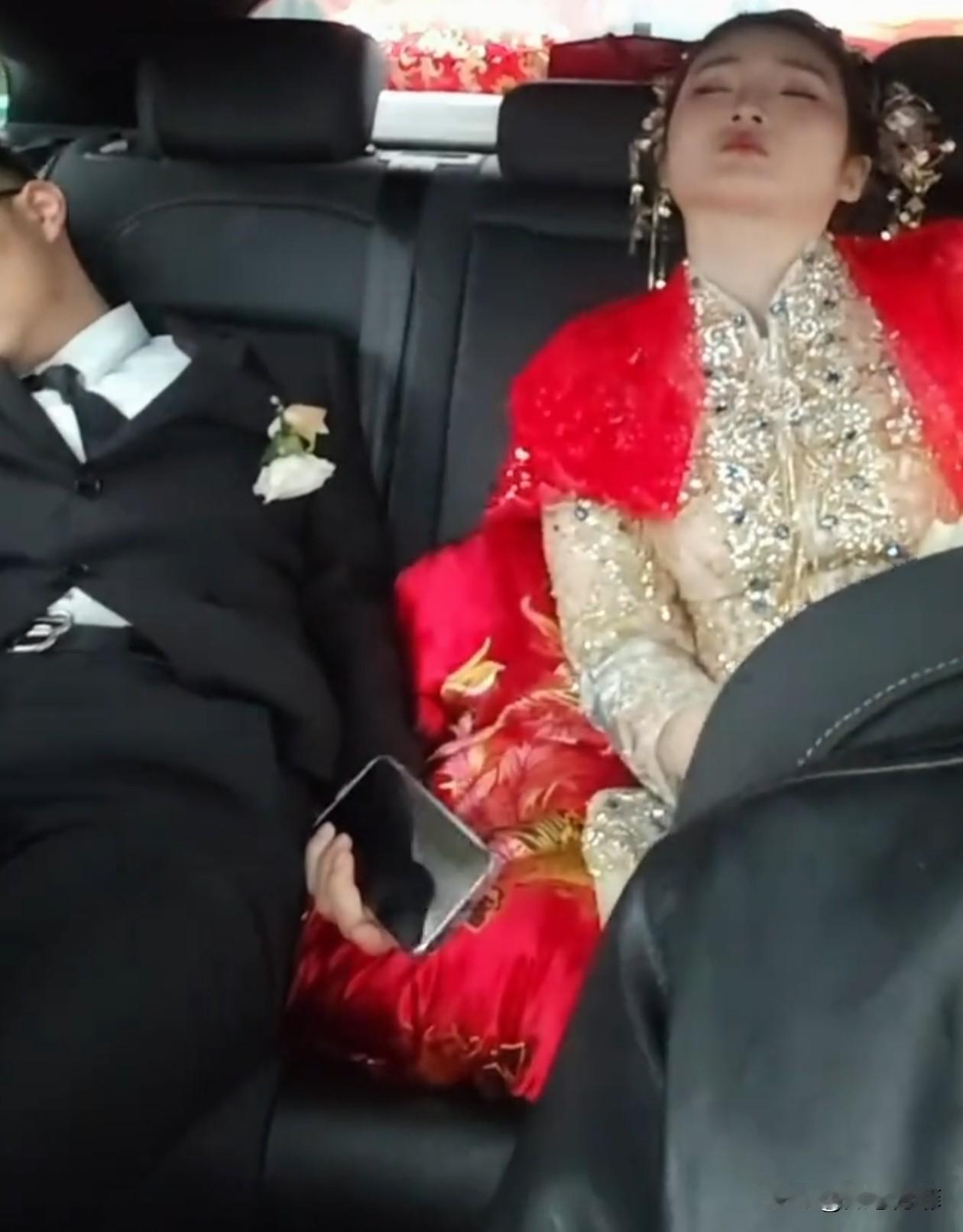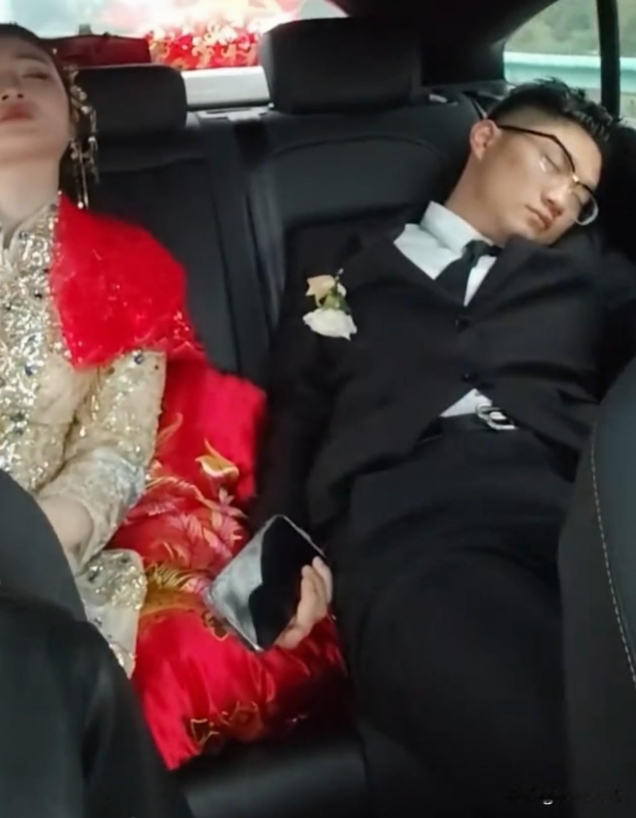 安徽,一对新人结婚,在前往婚礼现场的婚车上,两人都睡着了,新娘靠在座椅上,新郎歪头酣睡,画面温馨。网友:终于娶到手了,终于嫁了,两个人都放心了。 结婚当天,新娘早早就起床化妆,新郎也没闲着,一早组织接亲车队,和伴郎们一起玩堵门游戏,还有亲友互动,体力消耗很大。 等两人坐上婚车,才终于放松下来,没多久新娘往座椅上一靠,就沉沉睡去,新郎也歪着头睡着了,嘴角还微微带着笑。 跟车的亲友看到这一幕,悄悄拿出手机,记录下了这美好的画面。 虽然两人睡得有点狼狈,但这才是婚姻最真实的开始,就这么安安静静靠在一起睡觉的样子,比任何婚纱照都让人觉得温馨。 结婚第一天就同框酣睡,这默契也是没谁了。他们是累并幸福着,往后过日子就是这样,既能共赴热闹,也能同享安稳。 希望他们往后风雨同舟,苦乐共享,把每一个平凡的日子,都过成像此刻这样充满烟火气的小幸福,祝福他们。
