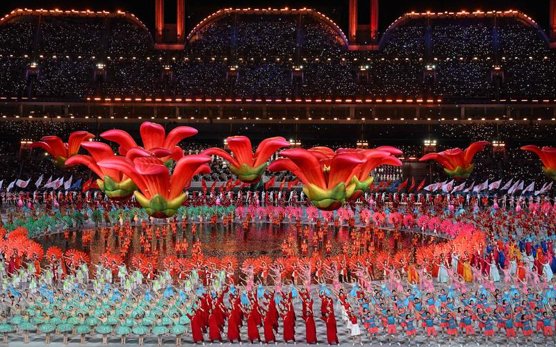 第十五届全运会盛大开幕。除了中国国家领导人,国际奥委会主席考文垂和终身名誉主席巴赫也出现在开幕式现场,共同为中国的国家级运动会揭幕。