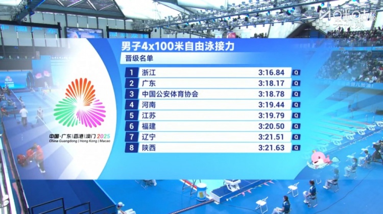 直播吧11月10日讯全运会游泳4x100米自由泳接力预赛,浙江队第一晋级决赛。
