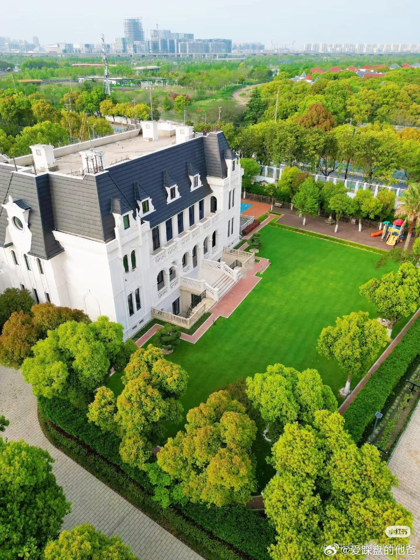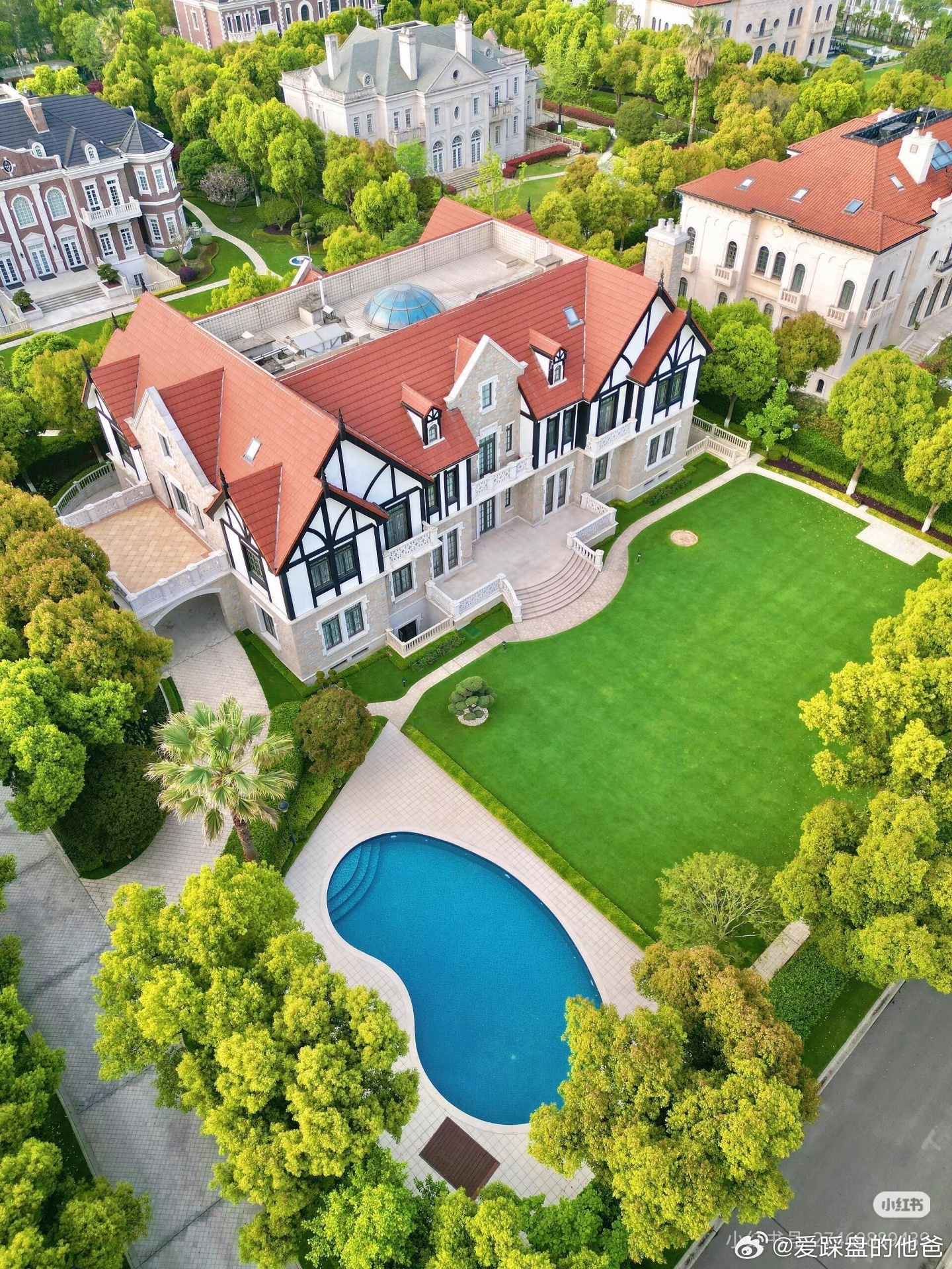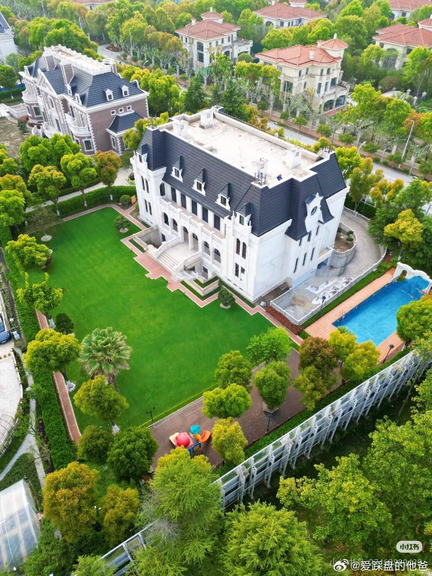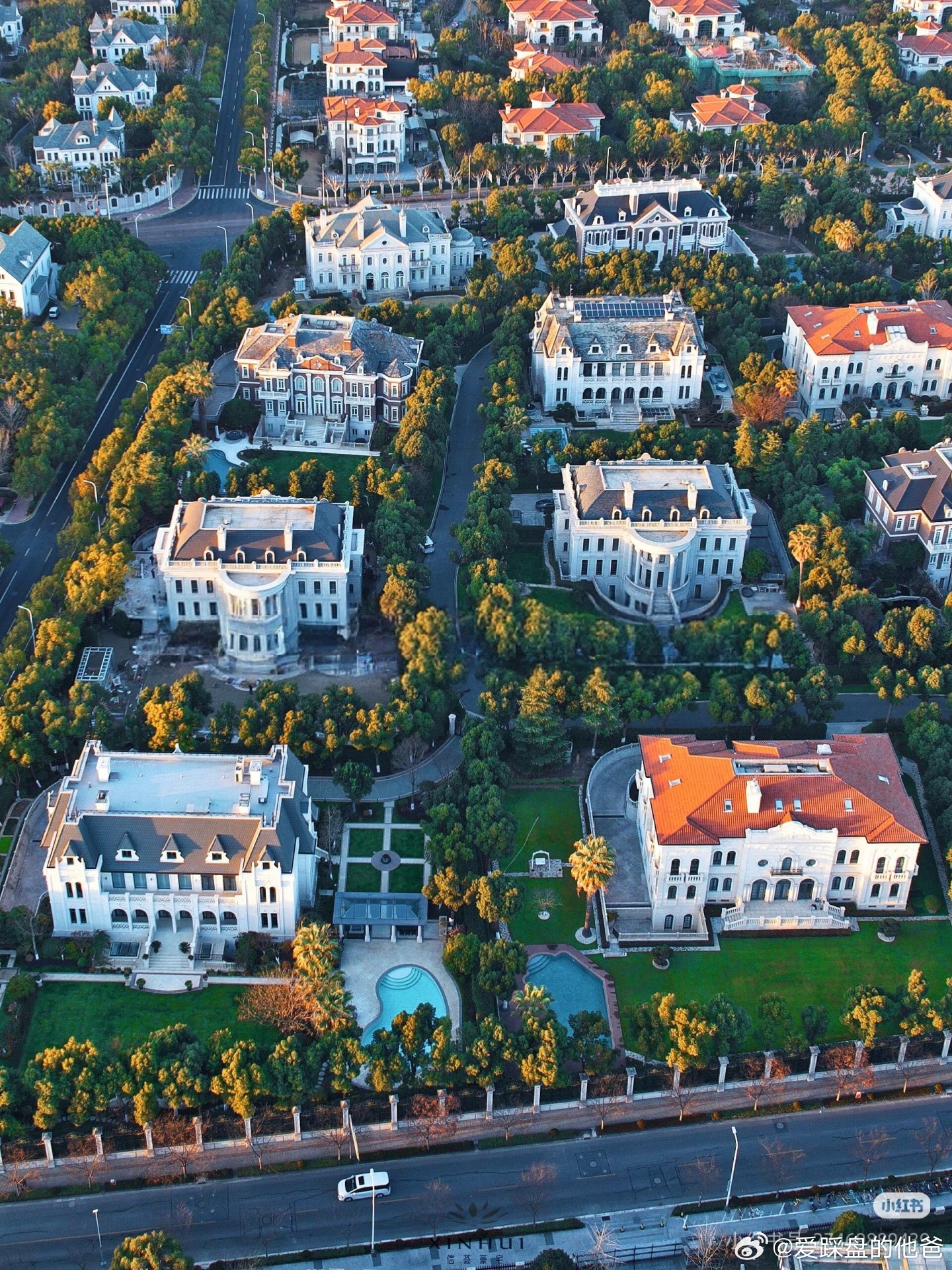 华洲君庭一直是沪上别墅圈的标杆,开盘十余载,社区仅21栋别墅,涵盖7种经典建筑风格——古典复兴、英国亚当、英国乔治、地中海、法国古堡、巴黎学院派、英国都邑,每一栋都像典藏级作品,古典大气的质感扑面而来。居住体验更是顶配:户户带约3000㎡大花园+私人泳池,室内配电梯与地源热泵系统,建筑面积1300-2100㎡,占地5-6亩,完全是上海版“比弗利山庄”既视感。