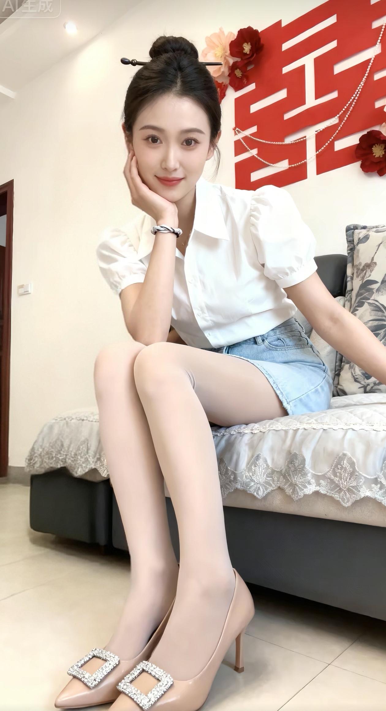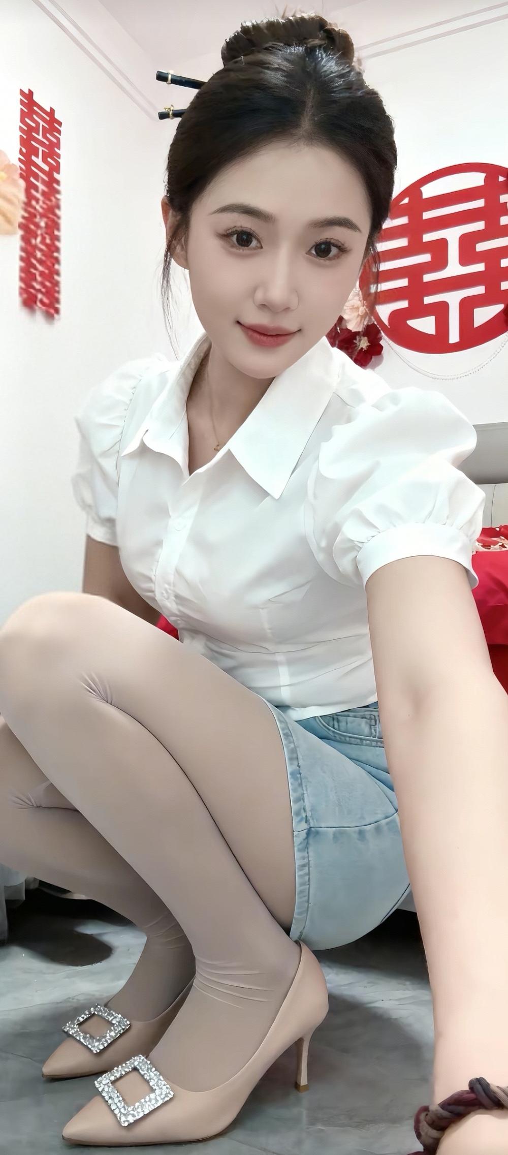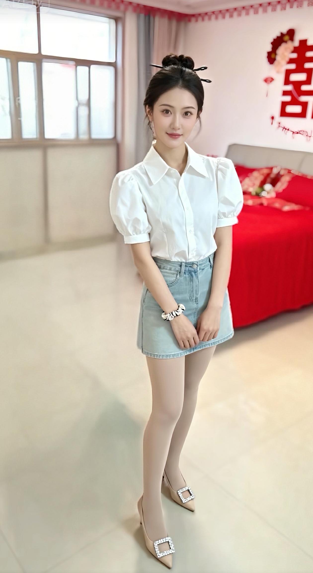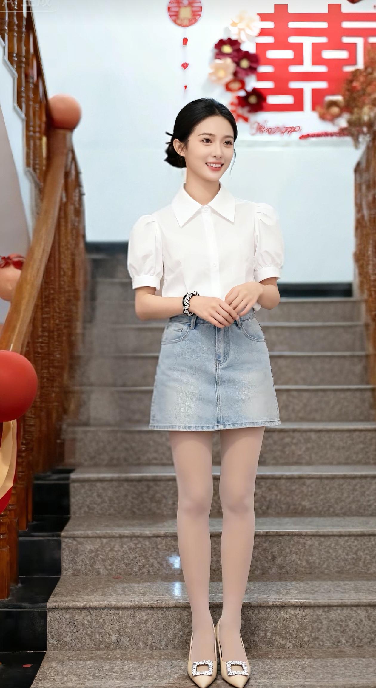 优雅白衬衫搭配牛仔短裙,甜美可人,尽显青春活力!🌸💃🏻