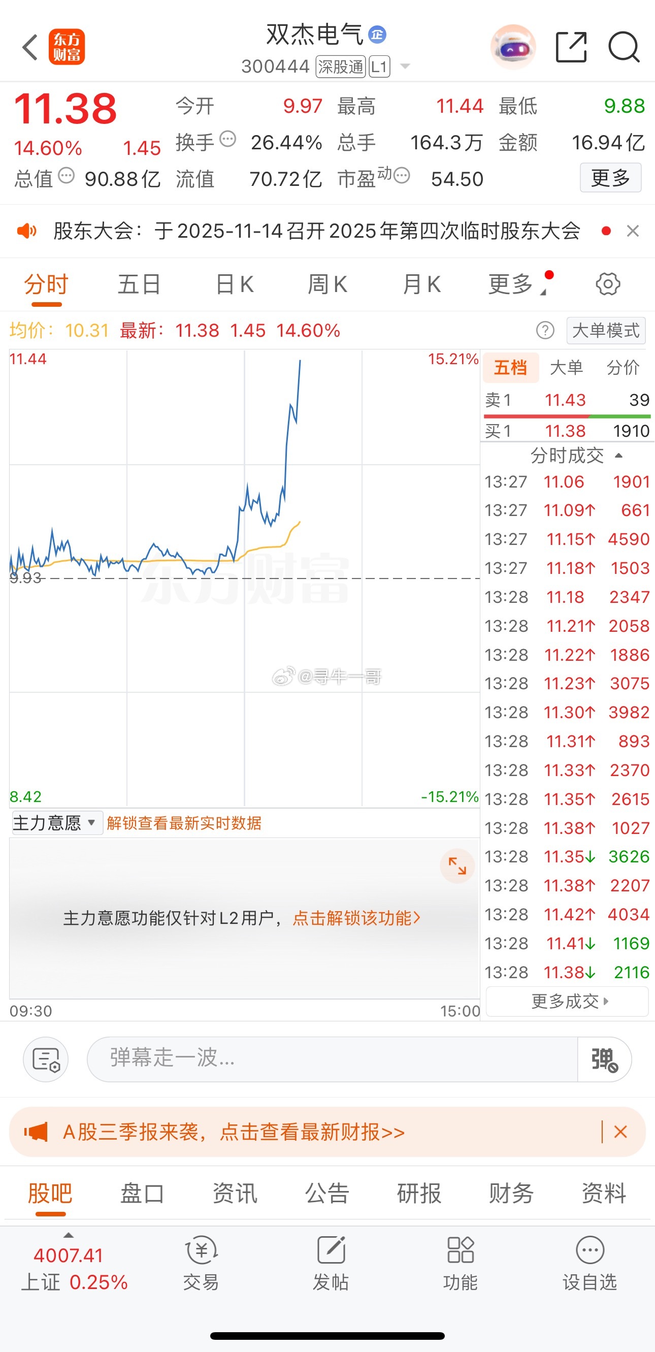 强者恒强,$双杰电气 sz300444$ 不要说没有进场机会,11月6日上周四已经明确给到你们了,需要跟上下一只的私信一哥!