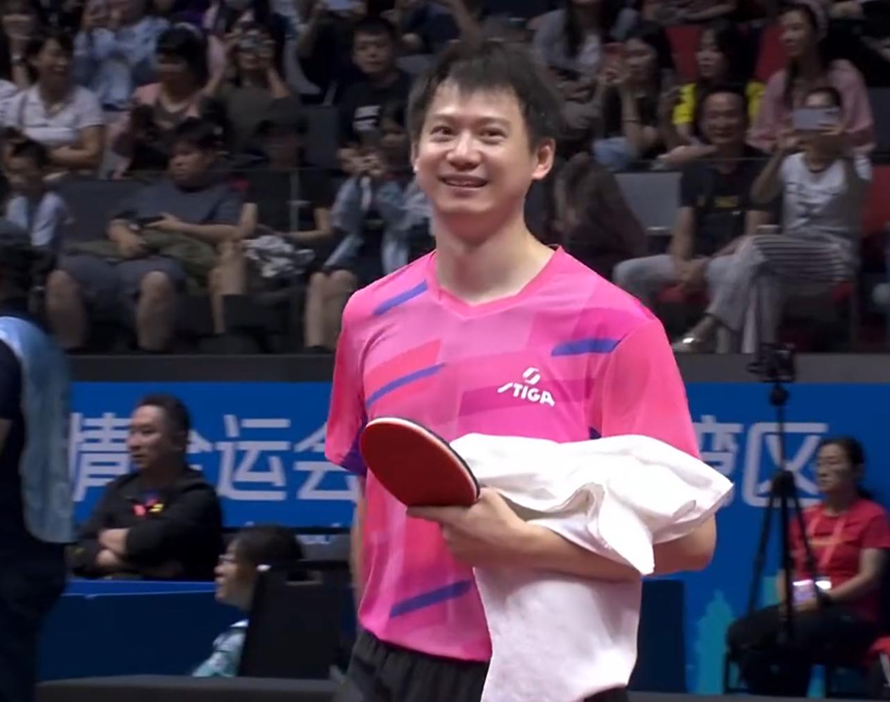 樊振东对阵周雨,周雨第四局暂停时和教练的对话太有意思了。 第一局,樊振东一度以9-4领先,但是顽强的周雨随后追到10-10,关键时刻,樊振东顶住压力,连拿2分以12-10赢下。 第二局,樊振东在中局拉开分差,最终是以11-6获胜。 第三局,樊振东又是在中局拉开比分,在9-4领先的情况下被周雨追到10-8后,樊振东叫暂停。暂停回来后,樊振东兑现了局点,以11-8赢下。 第四局,周雨开局就落后,随后叫暂停。在暂停的时候,周雨的教练一直叫他放开打,周雨的回答也很有意思,他说我想赢一局的。暂停回来后,周雨也一度追到了4-6;然后樊振东连拿3分再次拉开分差,周雨追到6-9后,樊振东没再给机会了,连拿2分以11-6再赢一局。大比分4-0横扫周雨晋级男单16强。 在赛后,没能赢下一局的周雨也没有显得失落,反而笑出来了。他也值得,现阶段他是很难赢樊振东的。