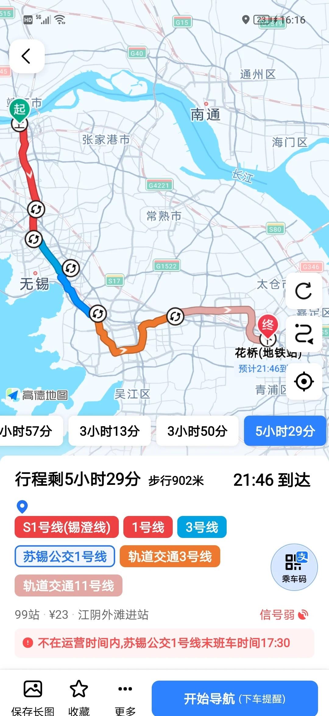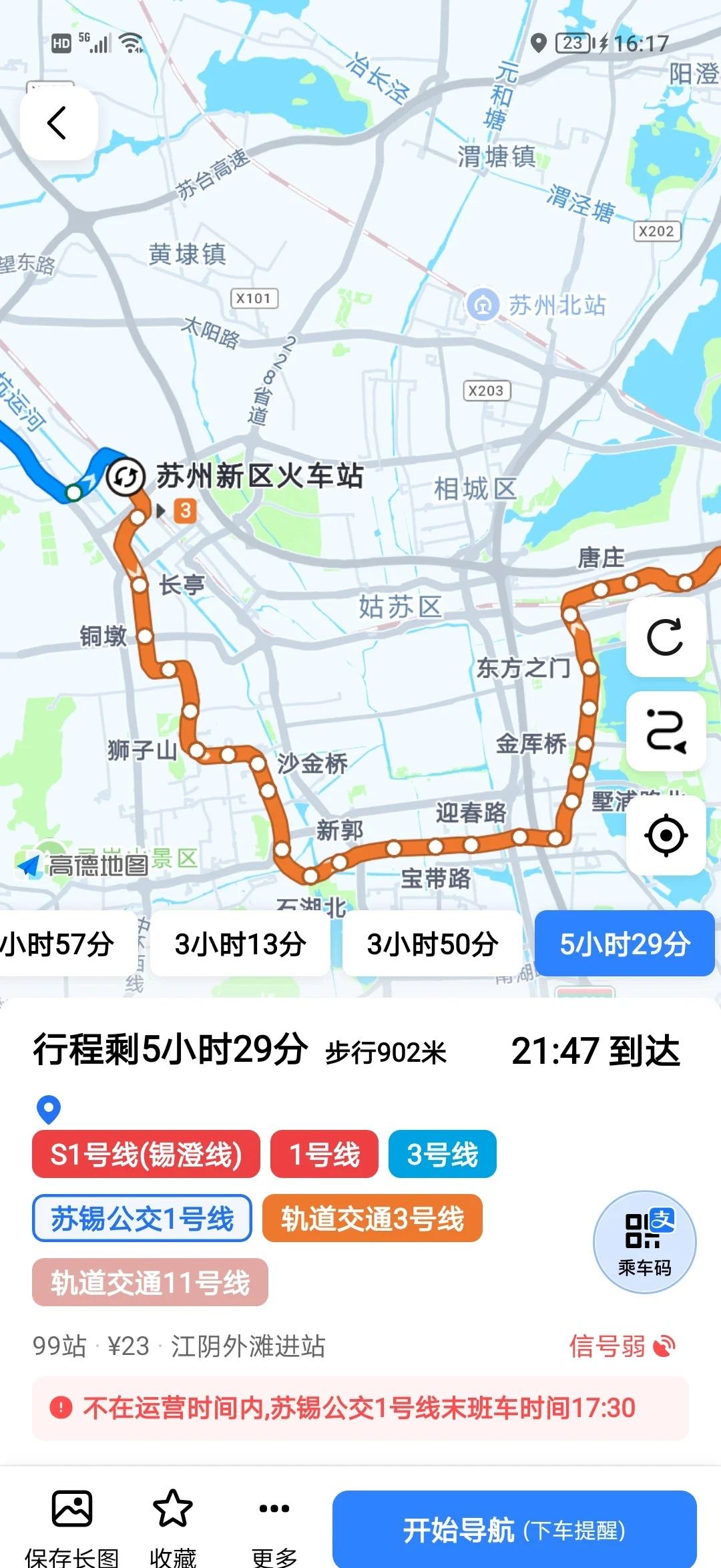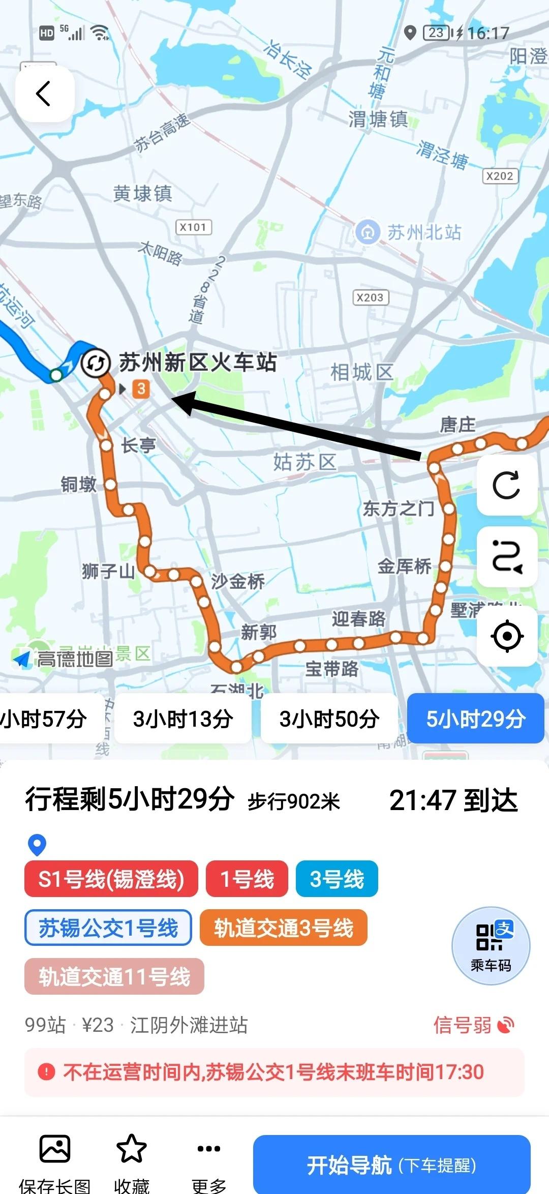 从上海到无锡的地铁可以“截弯取直”了 目前从上海直接坐地铁去无锡尚不可行,但未来或许能实现。以上海地铁16号线终点站滴水湖为例,未来从上海城市最边缘(以滴水湖为例)到无锡城市最边缘(以江阴外滩为例),大致路线如下:上海地铁16号线→罗山路站换乘上海地铁11号线→花桥站换乘苏州地铁11号线→唯亭站换乘苏州地铁3号线→苏州新区火车站换乘某条不知名线路→硕放机场站换乘无锡地铁3号线→无锡火车站换乘无锡地铁1号线,最终直通江阴外滩(无锡地铁1号线和S1线好像是直通运行的)。从苏州园区火车站到苏州新区火车站这段,中间换乘苏州地铁8号线和6号线较为快捷。只是不清楚未来是否会有更便捷的线路。(就是不知道,未来从上海地铁16号线的滴水湖站出发,坐地铁直达无锡地铁S1线终点站江阴外滩,最快需要几个小时?)轨道交通 上海地铁 苏州地铁 无锡地铁 无锡硕放机场 江阴外滩 无锡地铁S1线 苏州地铁11号线 苏州地铁3号线