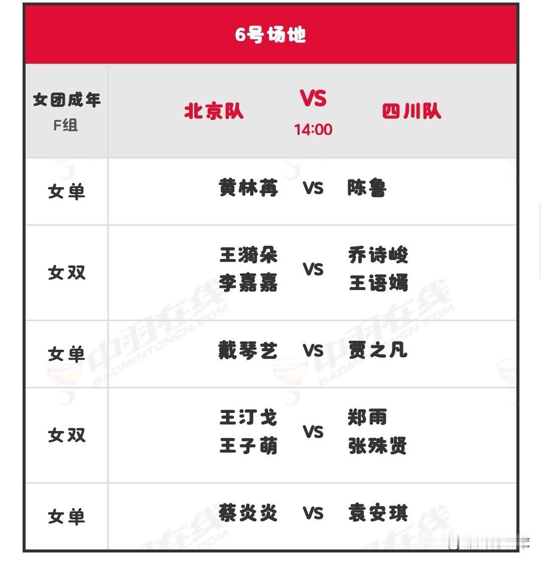 11月11日全运会羽毛球赛团体赛下午场赛程安排 今日,2025年第十五届全运会羽毛球比赛团体决赛阶段的赛事继续进行。北京时间下午14:00,六块场地将同时开赛。陈雨菲、黄雅琼、黄东萍、王祉怡、何冰娇、李怡婧/罗徐敏、贾一凡/魏雅欣、刘圣书等新老国羽队员将代表各自省队出战。详细对阵名单如下: 国羽赛程 羽毛球 羽毛球爱好者 羽毛球赛事 羽毛球比赛 国羽 国羽加油 陈雨菲 黄雅琼 2025第十五届全运会