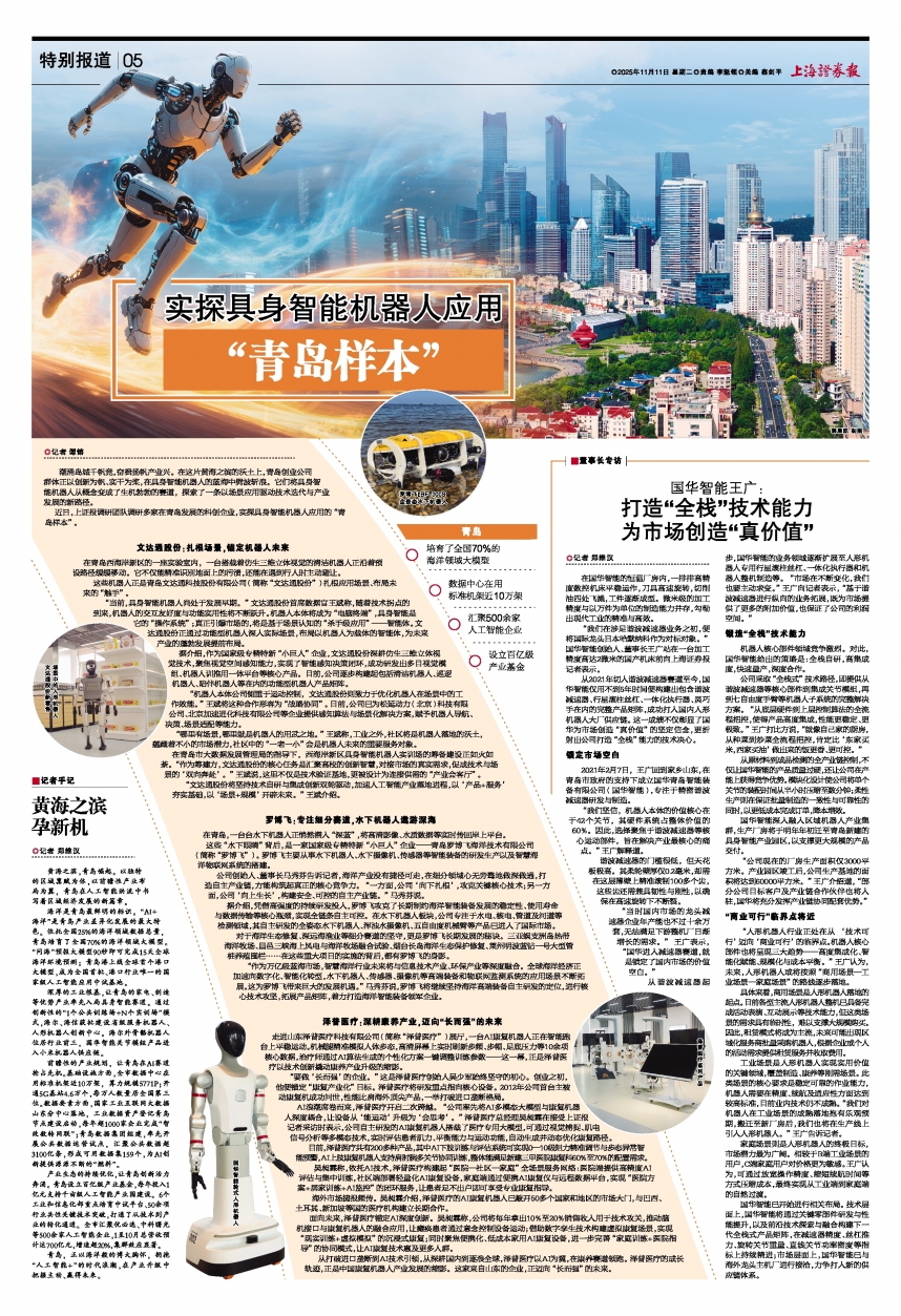 国华智能深入融入区域机器人产业集群,生产厂房将于明年年初迁至青岛新建的具身智能产业园区,以支撑更大规模的产品交付。