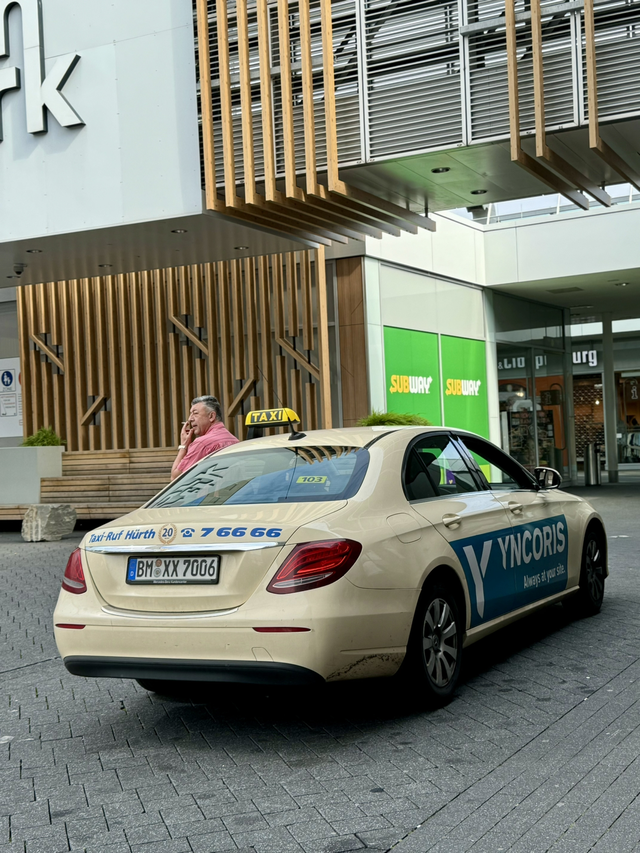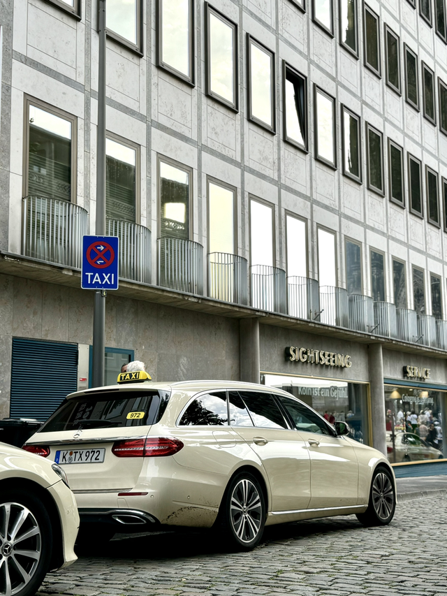 德国出租车全都奔驰E了? 前两天在德国科隆和法兰克福拍的,路上的出租车机场比较多,基本上都是奔驰e级为代表,路上跑的有奔驰的一级的常用轿车,还有奔驰e的旅行版,还看到了几台奔驰S的出租车,德国这么野的吗? 不过毕竟奔驰是德国的国产车,也能理解,就像我们这边很多车都是新能源一样。