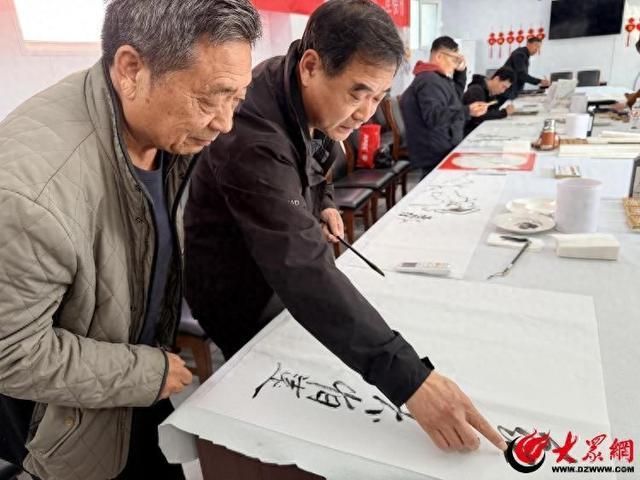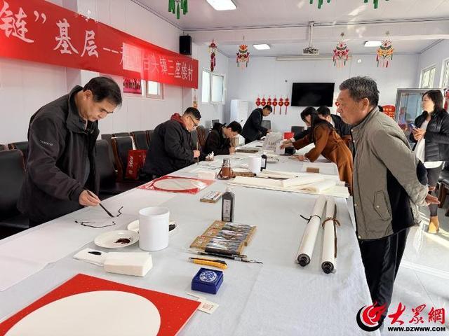 “起笔收笔要沉重,这个笔画稍微飘了点,慢下来才能出韵味……”11月6日上午,潍坊寿光市台头镇三座楼村的文化活动室内暖意融融,笔墨香与欢笑声交织,潍坊市基层文化建设指导员“链”基层活动在这里温情启幕。作为远近闻名的乡绣特色村,这座小村庄当天迎来了一群特殊的“文化客人”——中国美术家协会会员、山东省美术家协会理事、潍坊市美术家协会副主席段孝敏带领马新禄、齐小姣、刘洪韬、李大增等多名知名书画家下沉基层,把专业艺术资源从画室搬到村民家门口,一场热闹又暖心的文化盛宴就此展开。