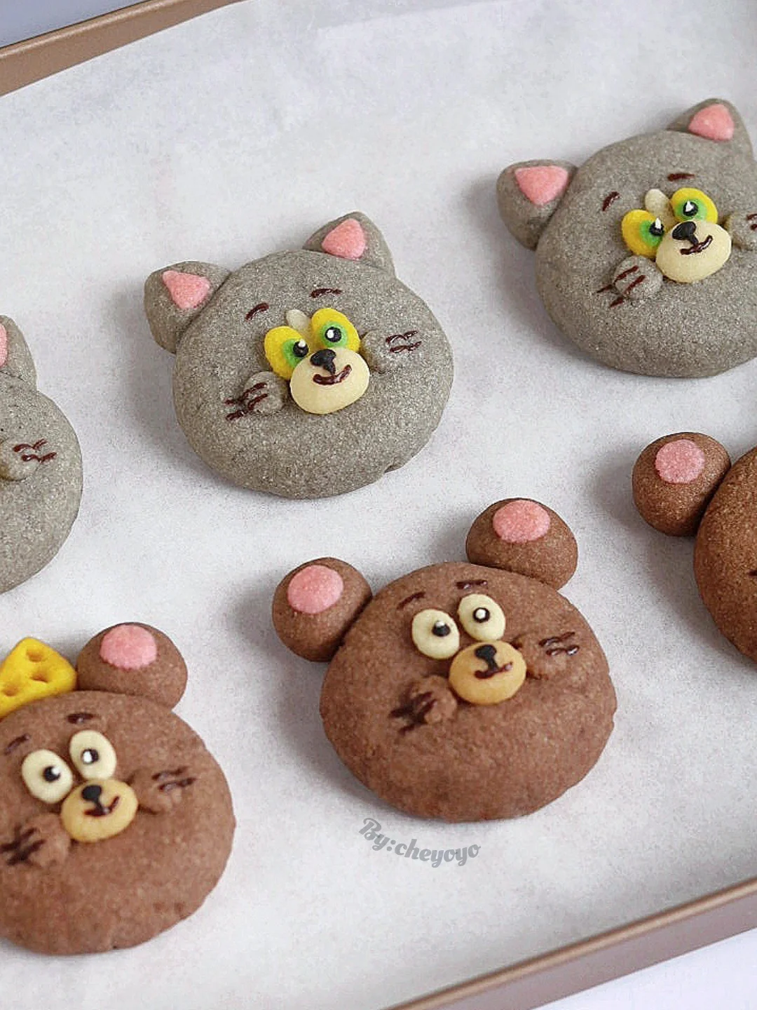 来波8090后动画片回忆:猫和老鼠卡通黄油曲奇饼干‼️Tom&Jerry的造型,可可爱爱,酥脆掉渣,做追剧零食、下午茶点、伴手礼都特别适合。制作简单不需要模具,多些耐心就可以喽😋
