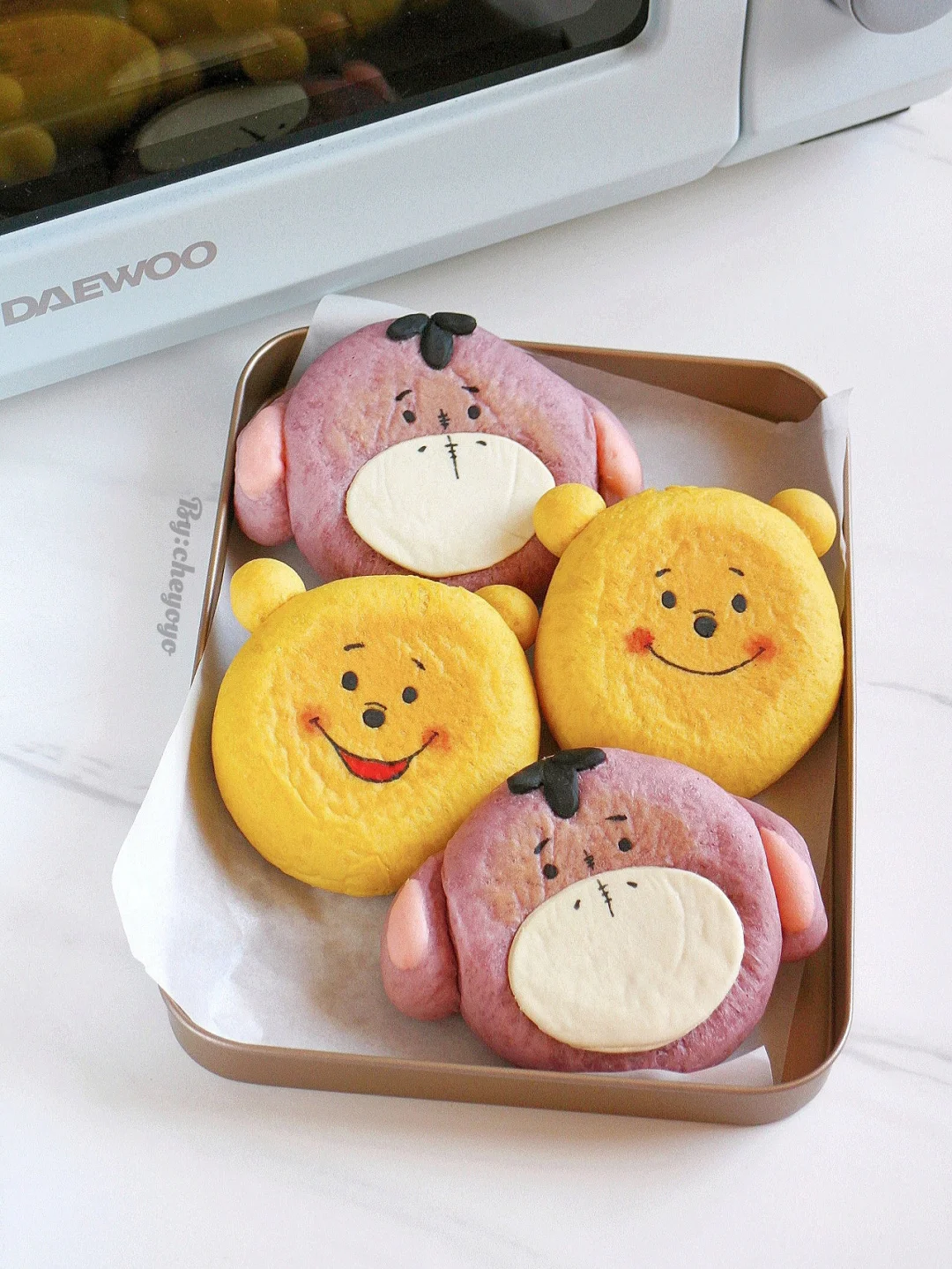 依旧是软糯香甜的日式红豆包!做成噗噗熊和屹耳驴的造型,可可爱爱又好吃。做法简单,只需要一次发酵,非常适合新手哦😌😌