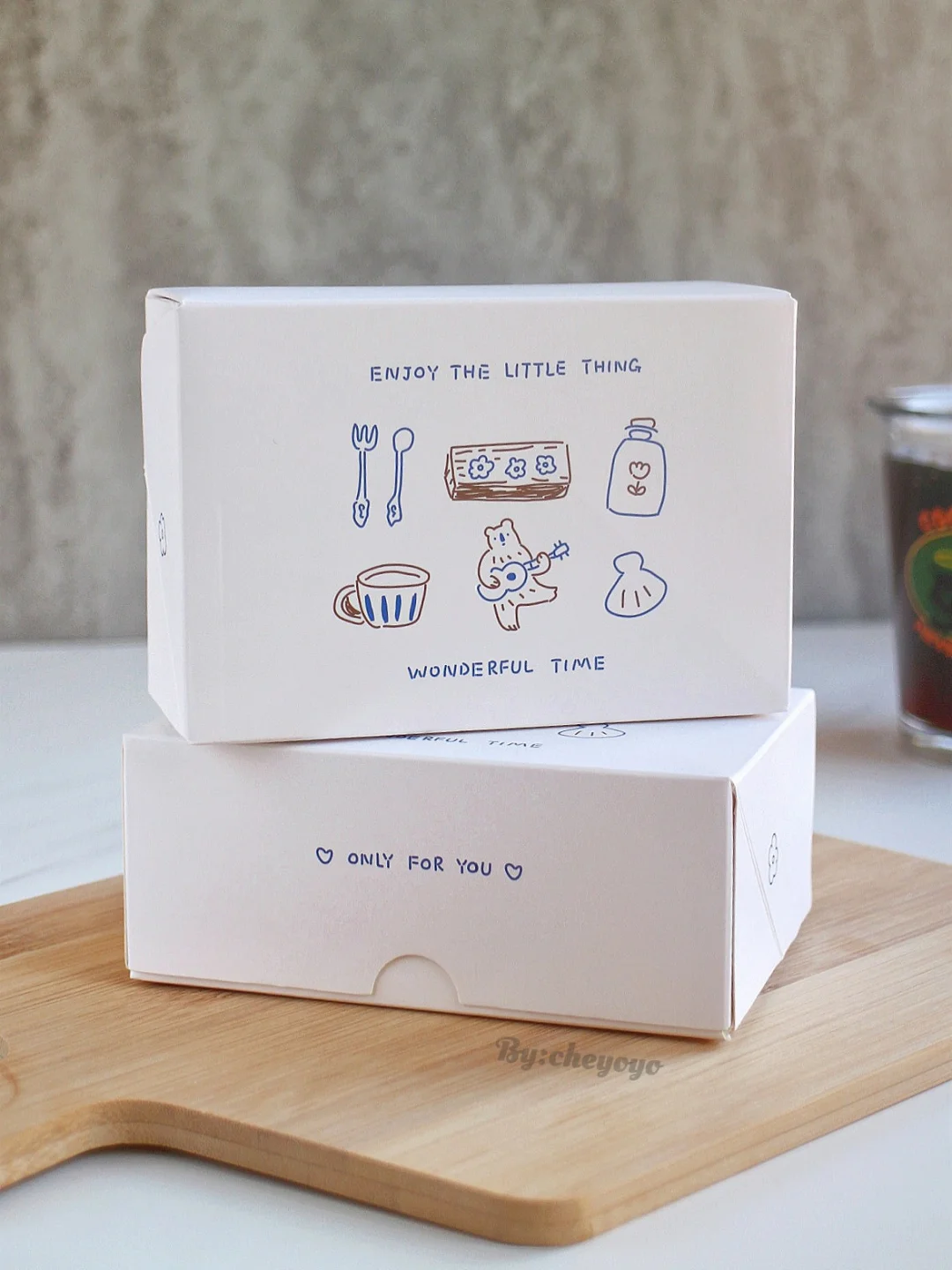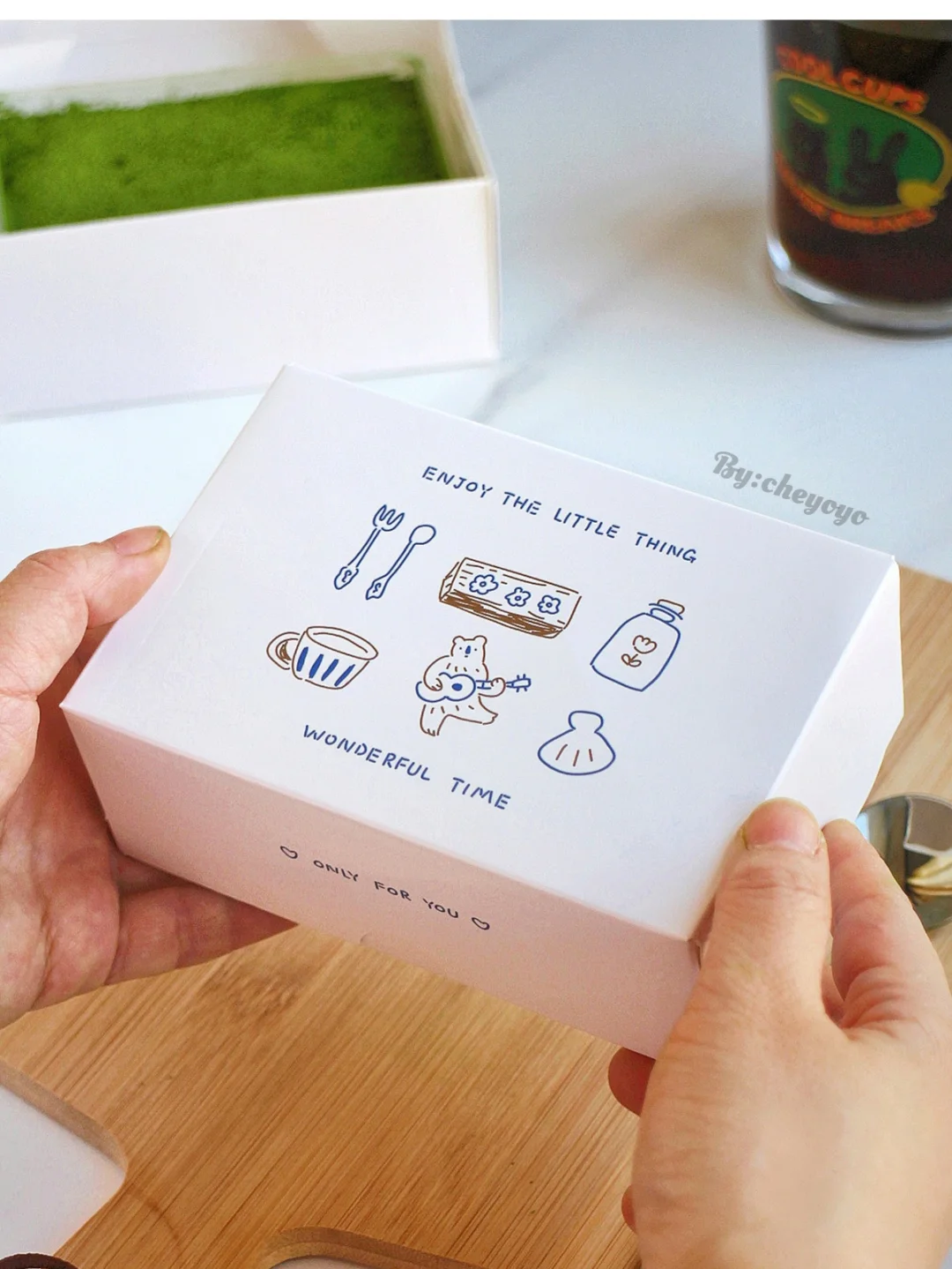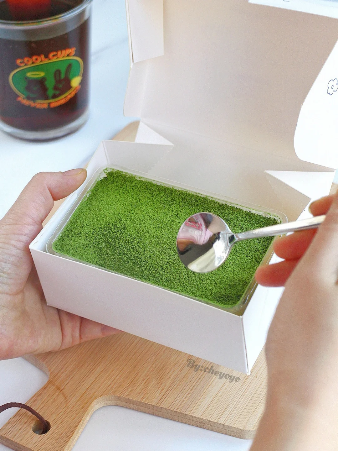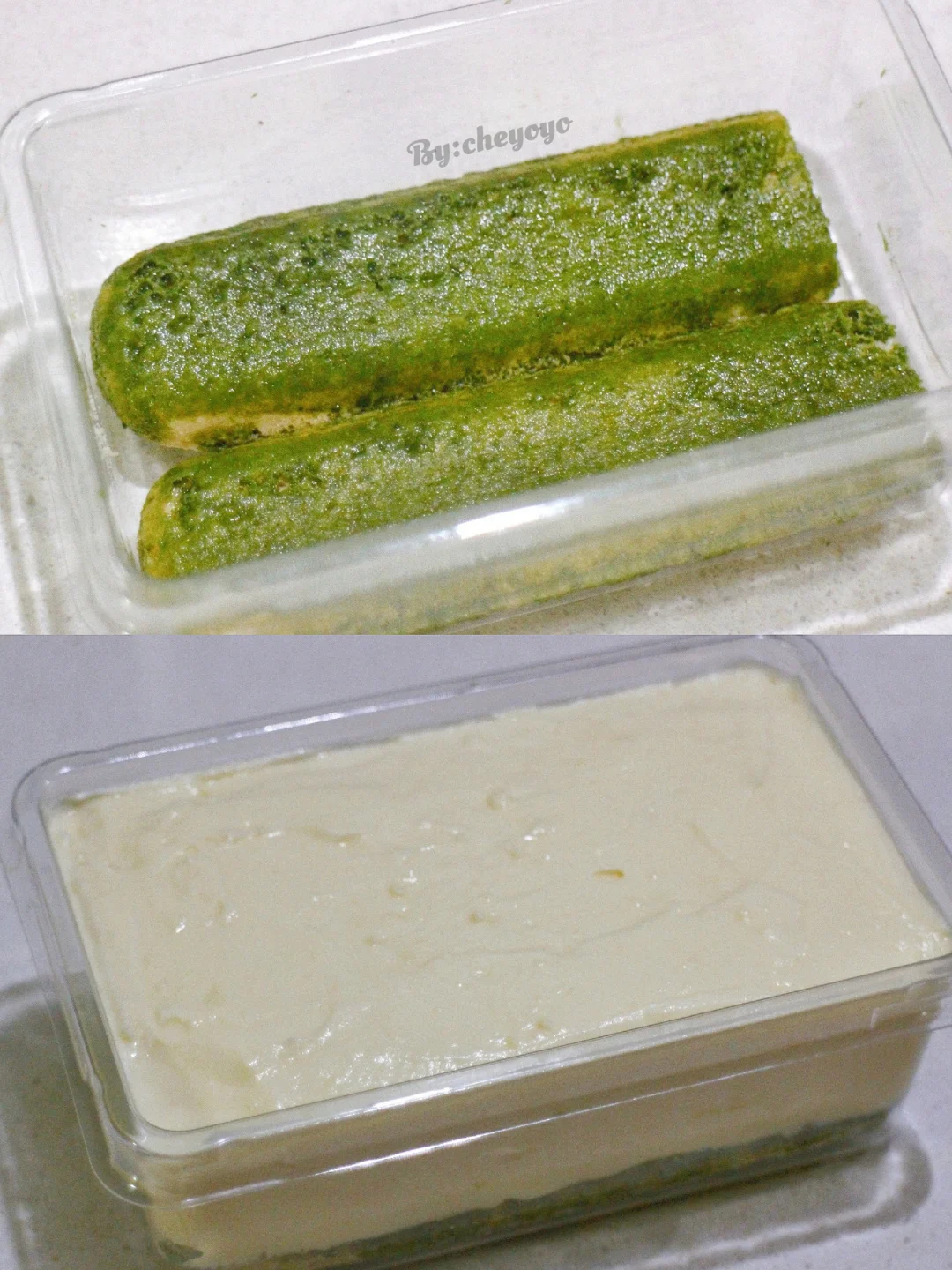 抹茶轻涩的苦味中和奶酪的甜腻,口感更轻盈更清新。这个方子的抹茶提拉米苏,可以做4盒(10.5*6.5*4.5cm)。包装盒是包礼包气的提拉米苏盒,手绘插画纸盒+带盖透明盒。