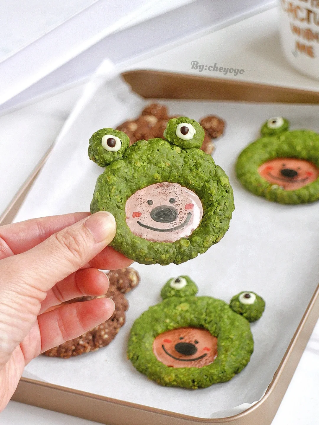 披着小熊外套和青蛙外套的柿子椒熊‼️酥酥脆脆,椰香浓郁,健康低脂低热量,做追剧零食、下午茶甜点都可以!不需要模具,搅一搅,捏一捏就可以[害羞R][害羞R]