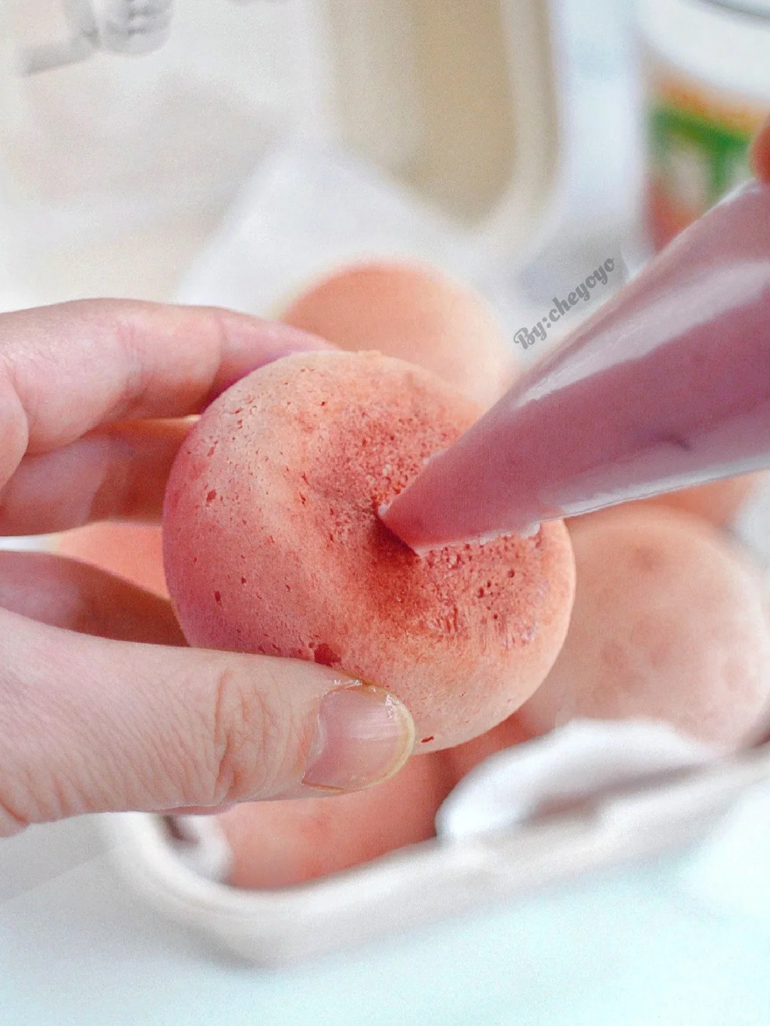 ⑤ 晾凉的麻薯底部戳洞,挤入内馅就可以啦[太阳R]