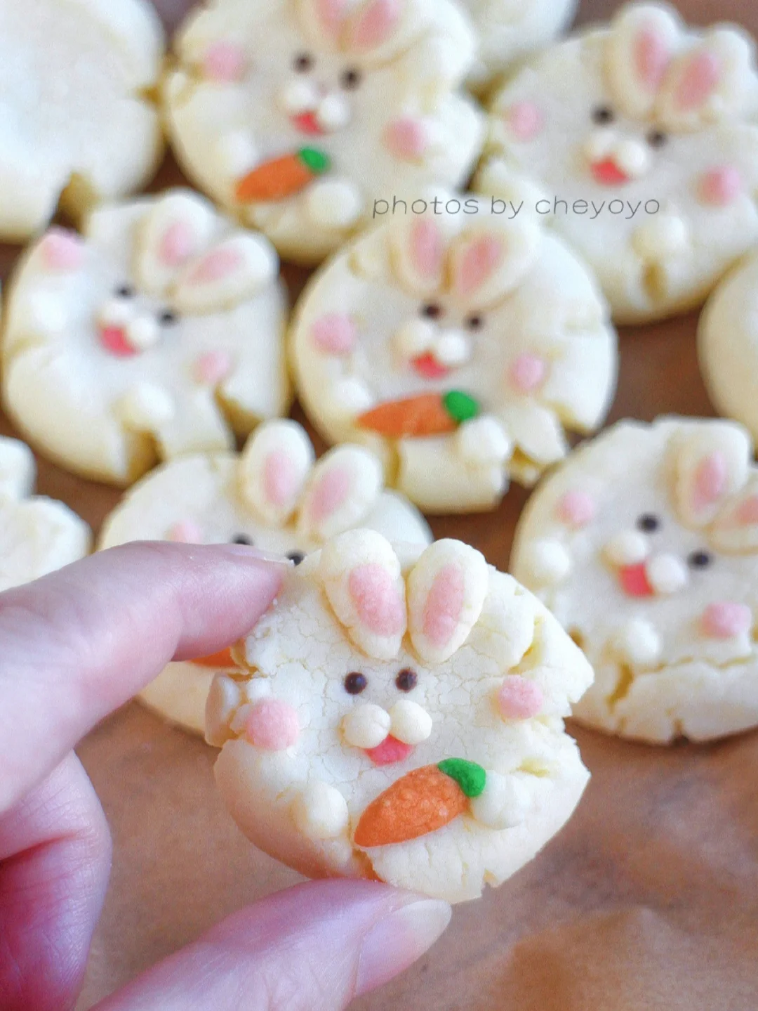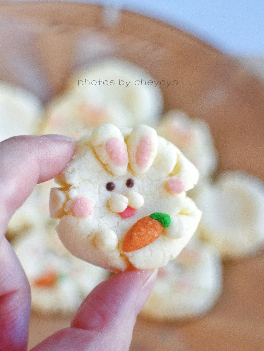 兔兔造型的玛格丽特饼干,圆滚滚的,口感轻盈入口即化。做法简单快手,不需要模具,非常适合新手[烟花R]