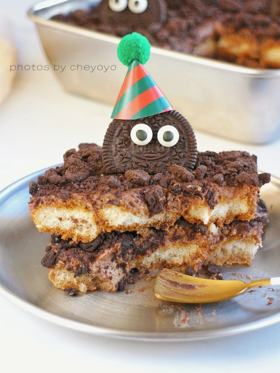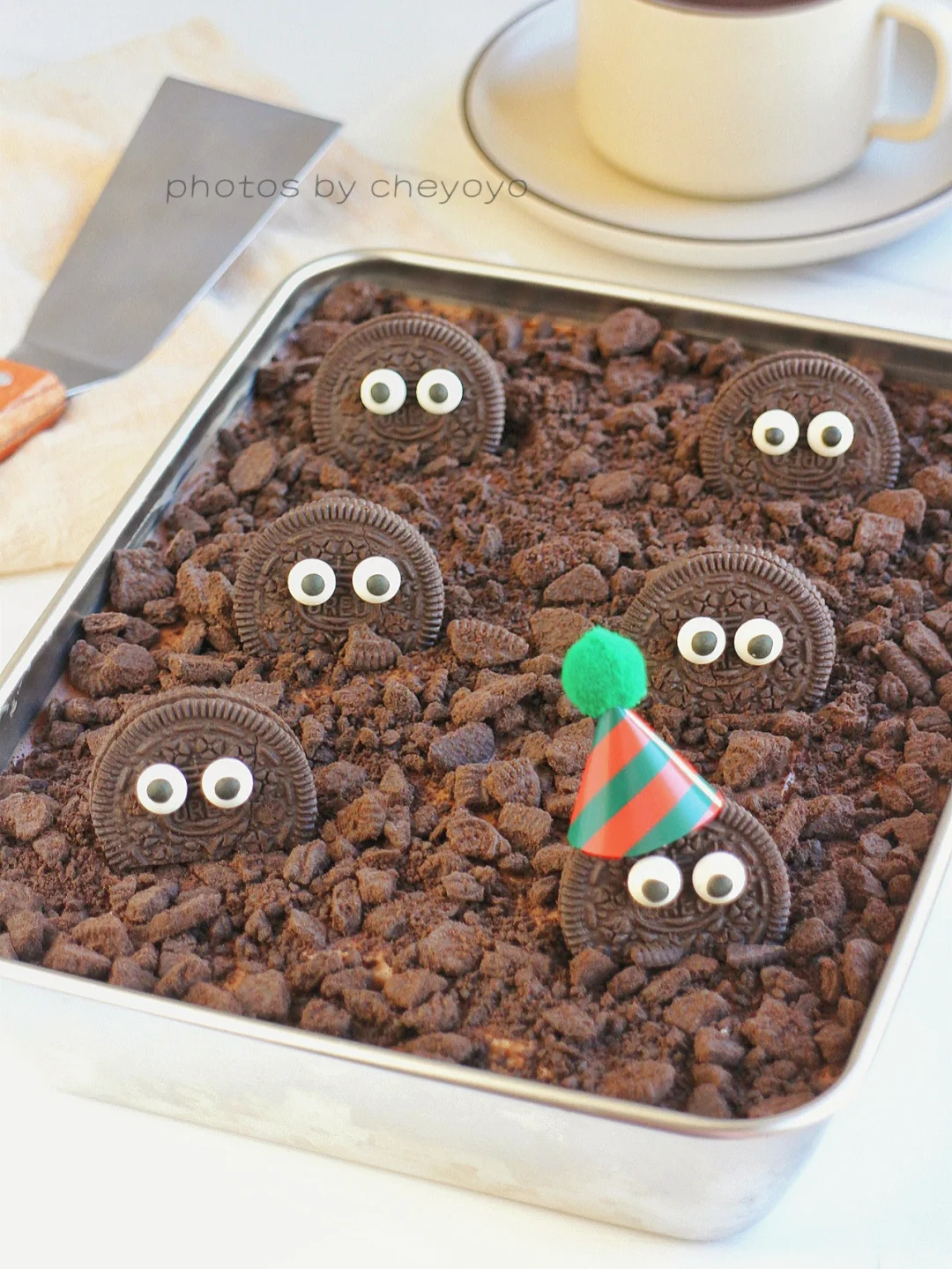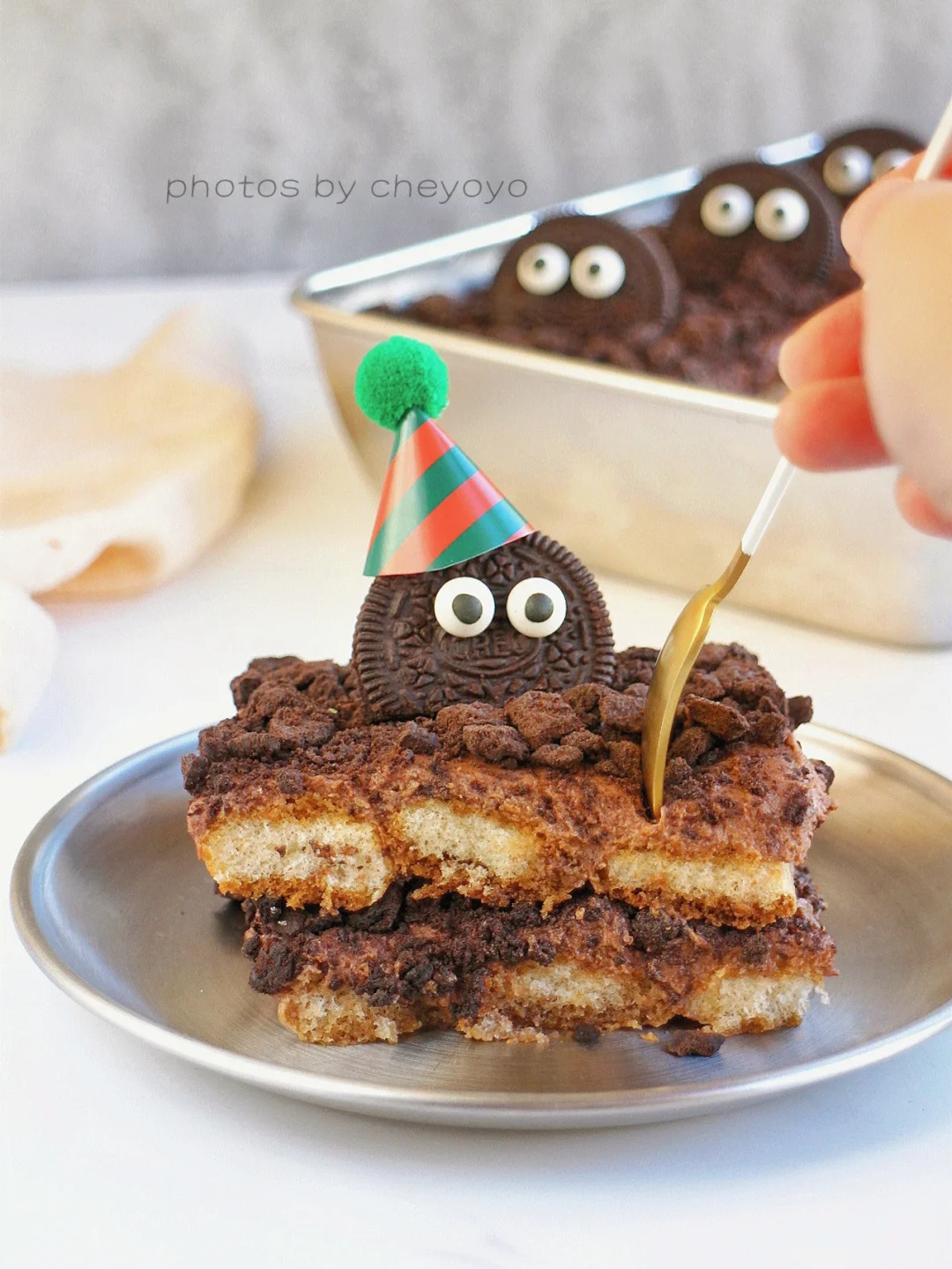 舀一勺巧克力奥利奥提拉米苏放进嘴里,是顺滑的芝士、浓郁的巧克力,淡淡的咖啡香和酒香,好吃到停不住嘴!再用眼珠糖装饰一下,圣诞氛围也立刻到位啦!姐妹们快试试~