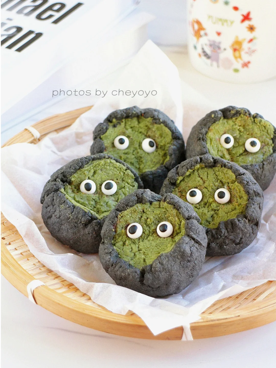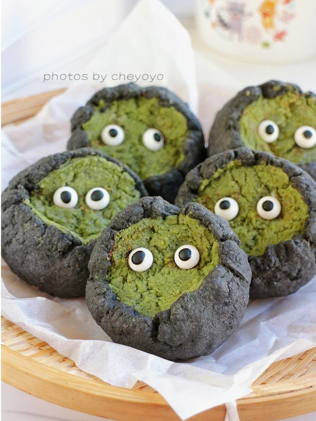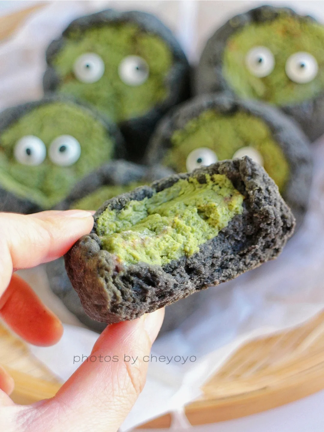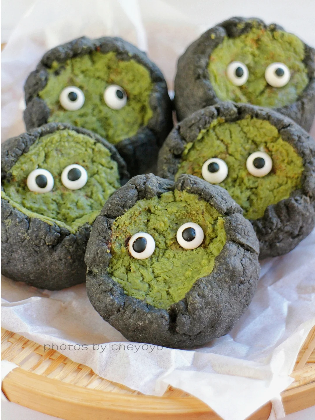 万圣节甜品上线啦~ 黑可可抹茶乳酪司康!趁热吃乳酪爆浆流心,冷冻后冰冰凉凉好像冰激凌。加上灵动的小眼睛,万圣节的氛围感马上到位!制作简单快手,拌一拌就可以了👻👻