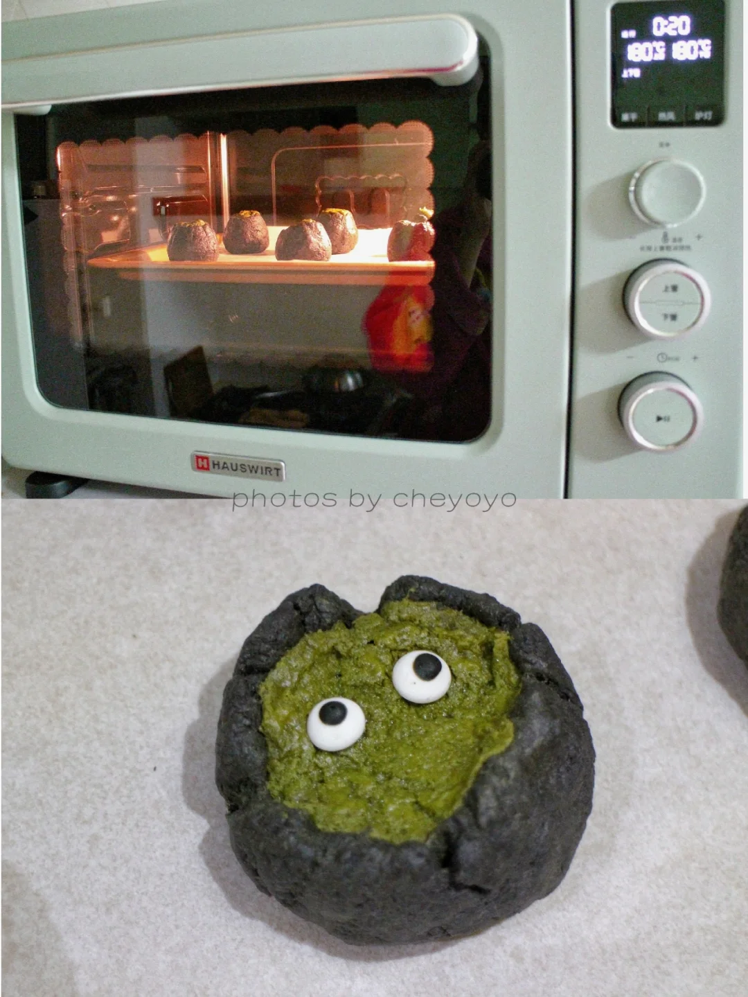 ⑤ 海氏C40烤箱预热,180度烘烤20分钟,冷却后放上眼睛糖就OK啦~👀👀