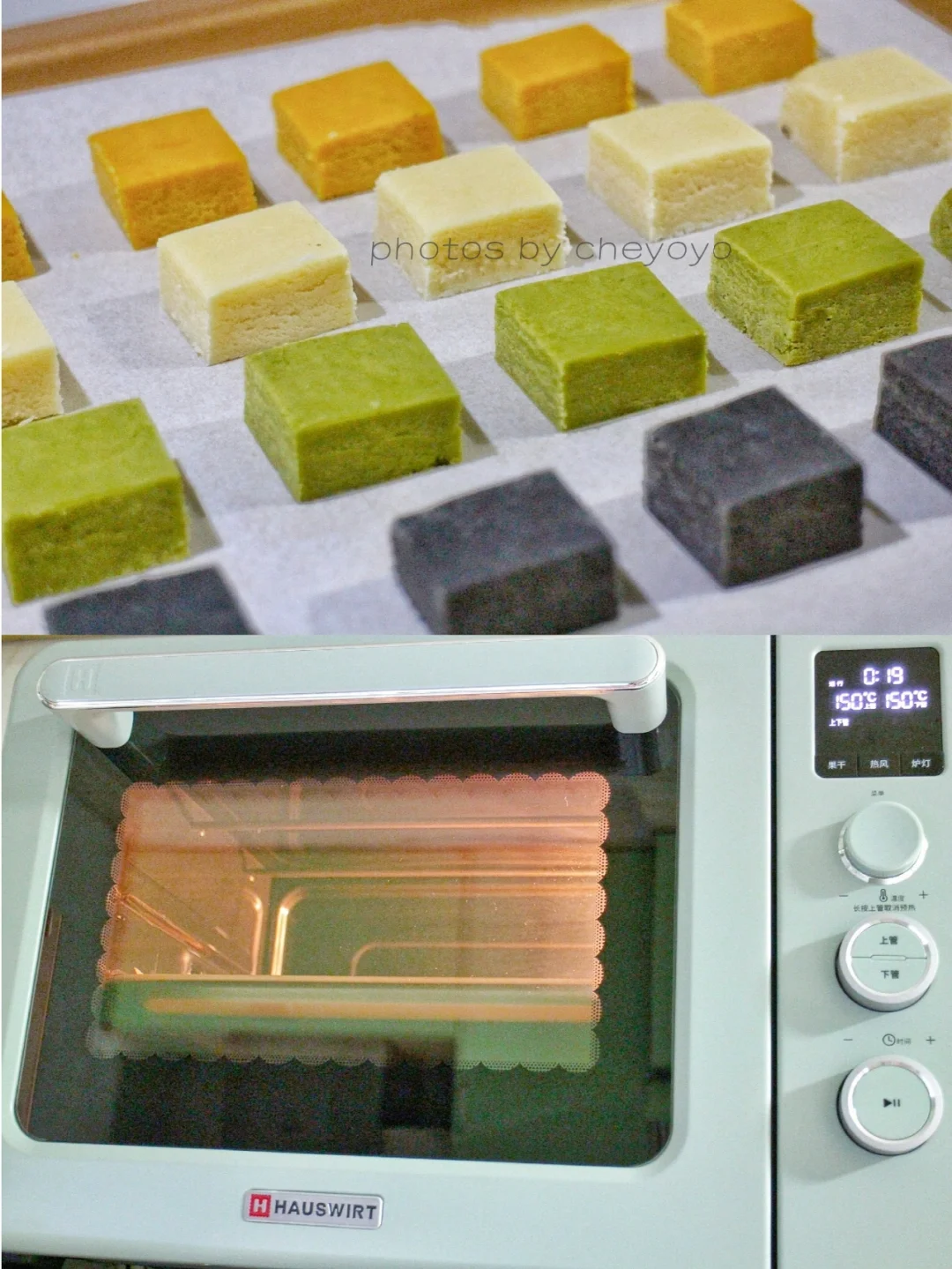 ④ 切成2cmX2cm的小方块,均匀摆到烤盘上,海氏C40烤箱预热,150度烘烤20分钟;