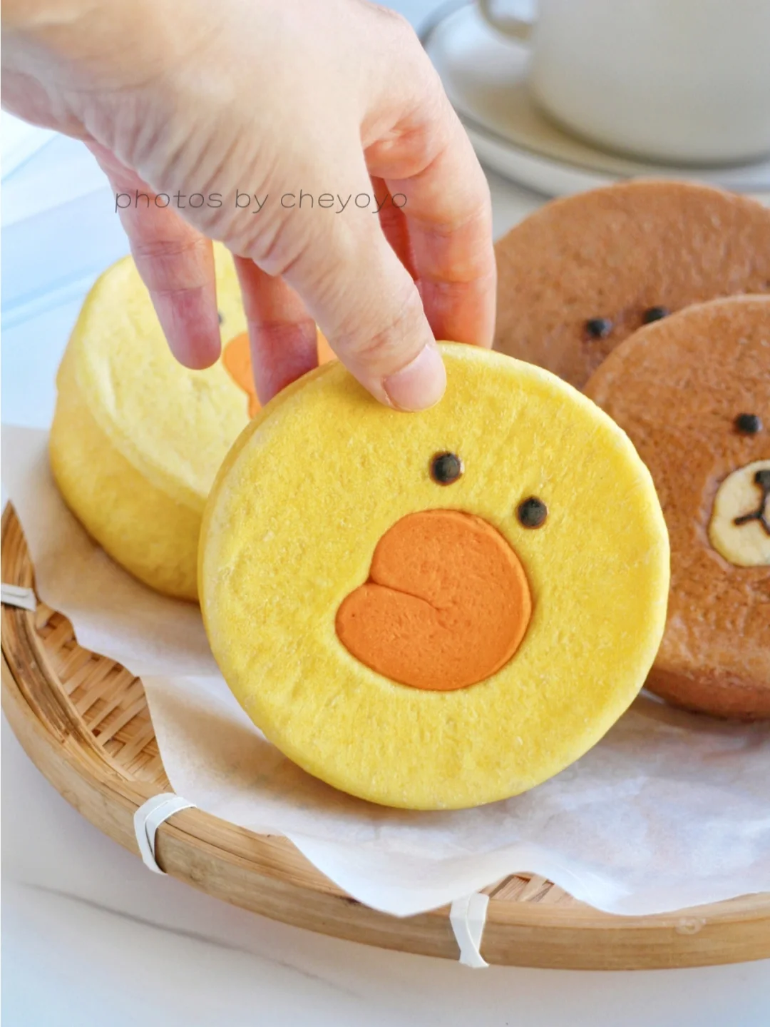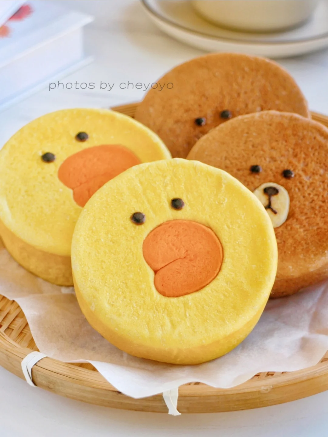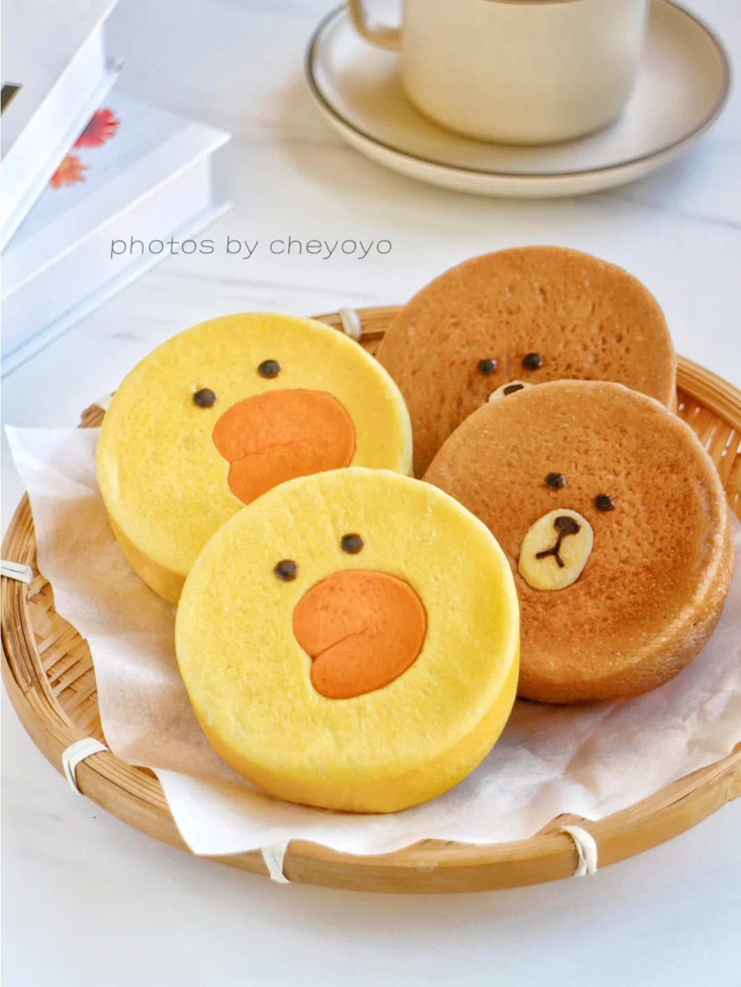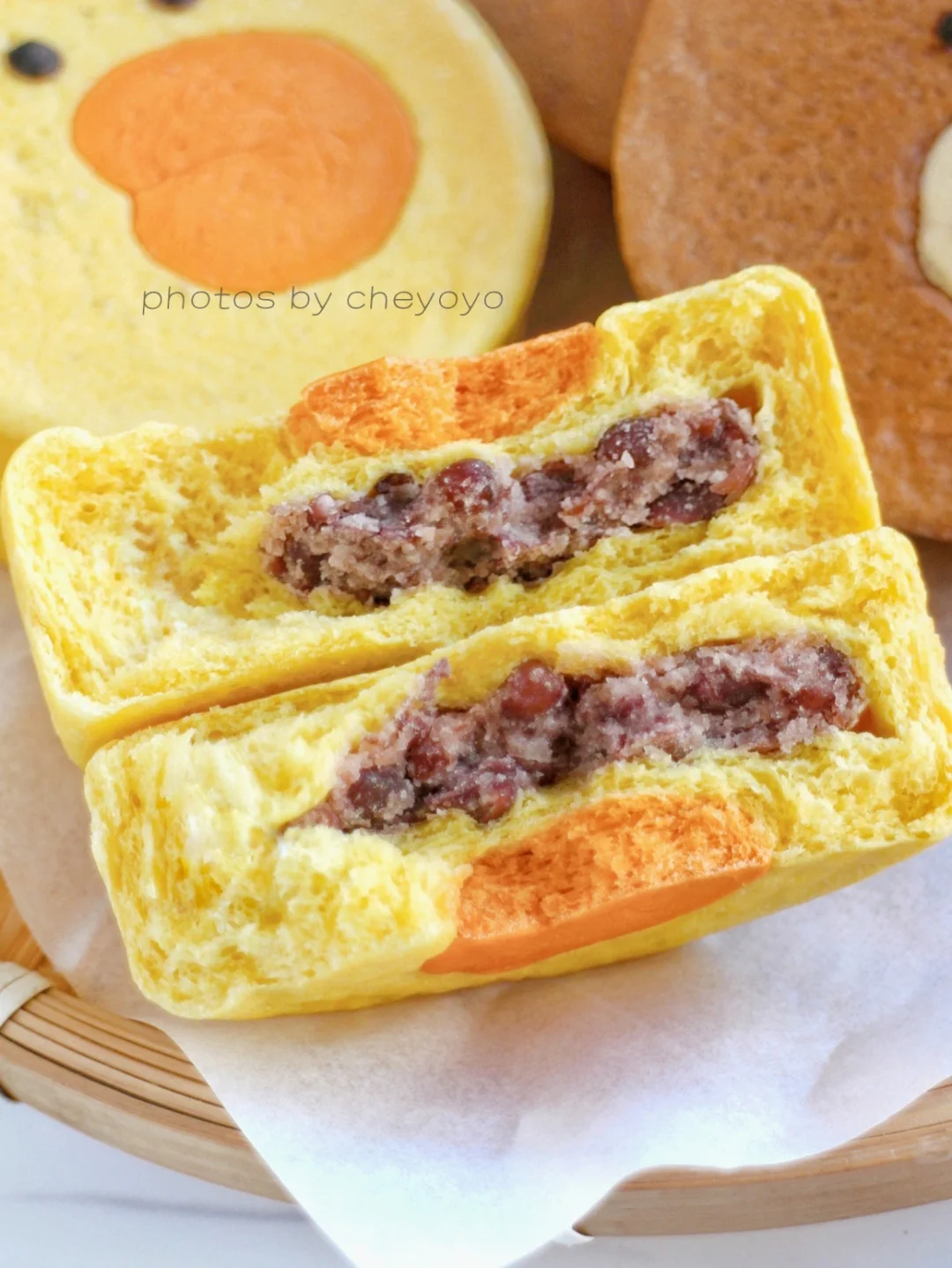 把布朗熊和莎莉鸡吃进肚子!松软的面包裹着香甜的豆沙,低糖低油,咬一口好吃又满足~🐥🐻