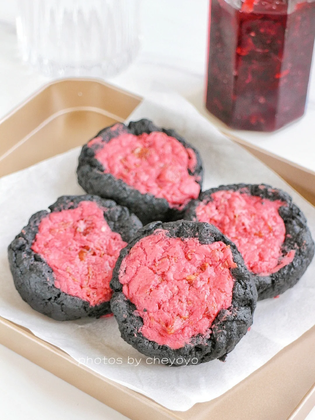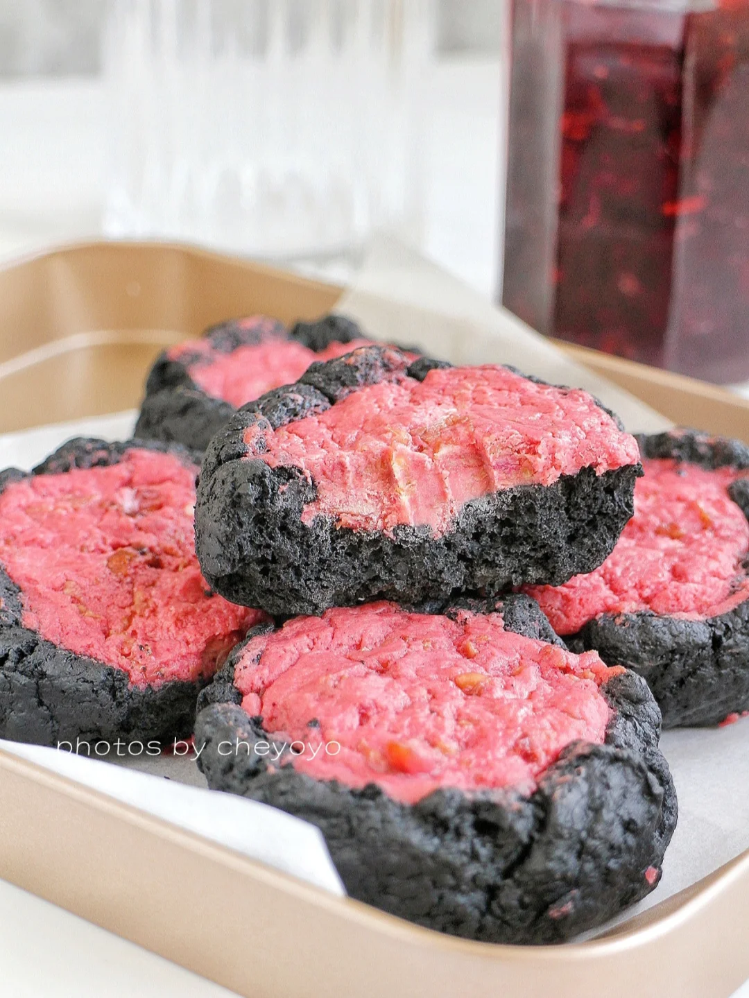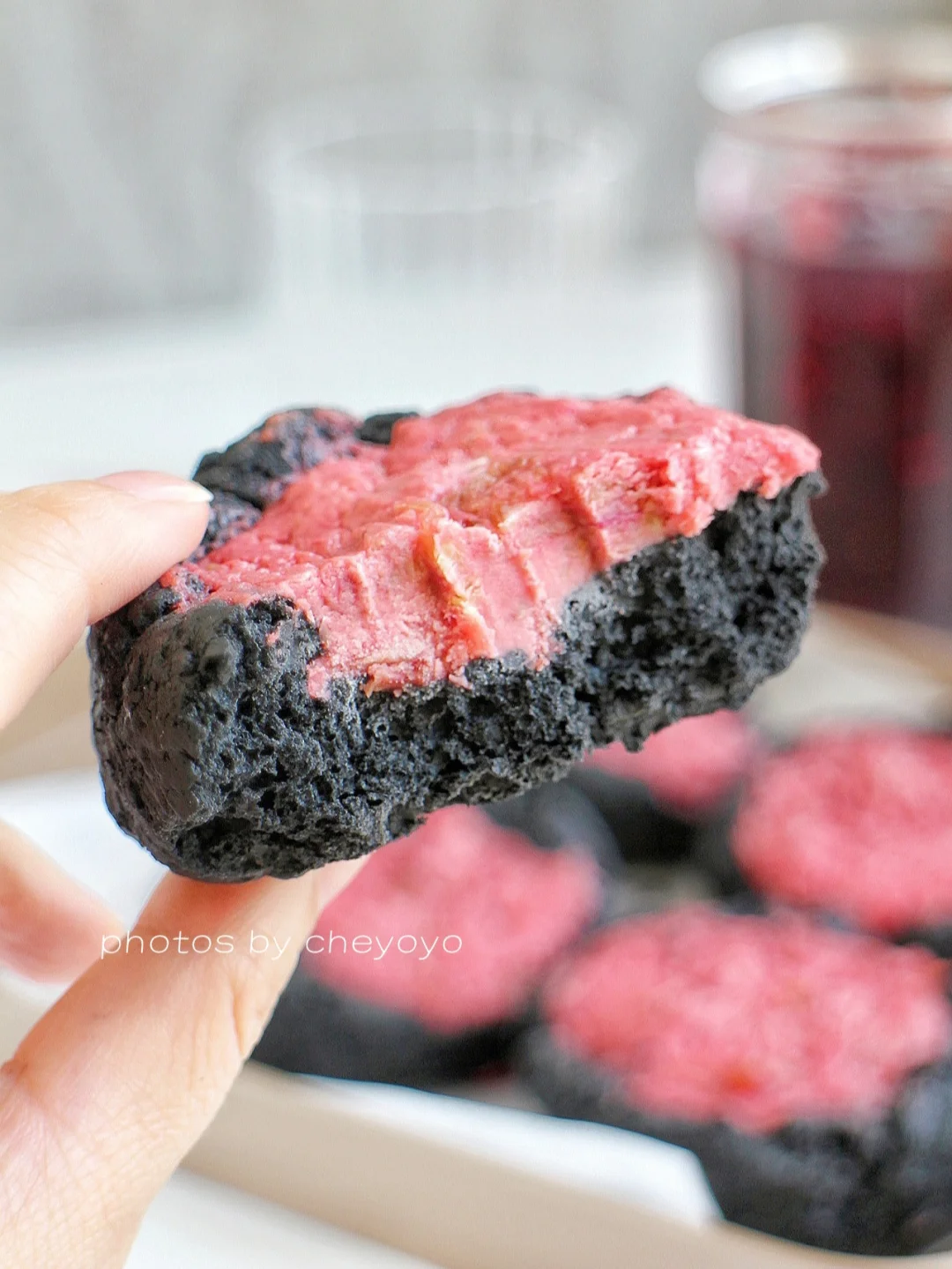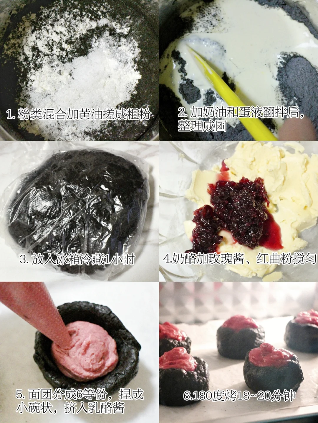 火遍全网的冻啃冰乳酪司康是真的好吃!热食乳酪流心,冻啃好似冰激凌,都让人爱不释口😌今天是玫瑰乳酪+竹炭司康的甜酷组合,味道超棒,做法超简单,搅一搅就Ok[萌萌哒R]