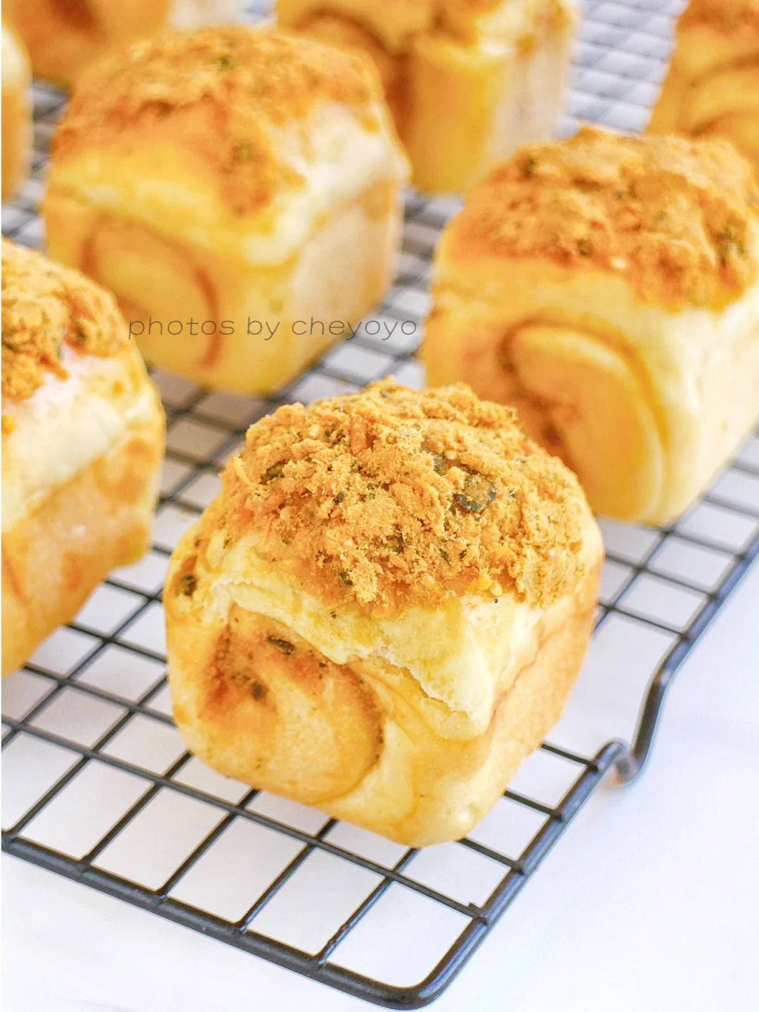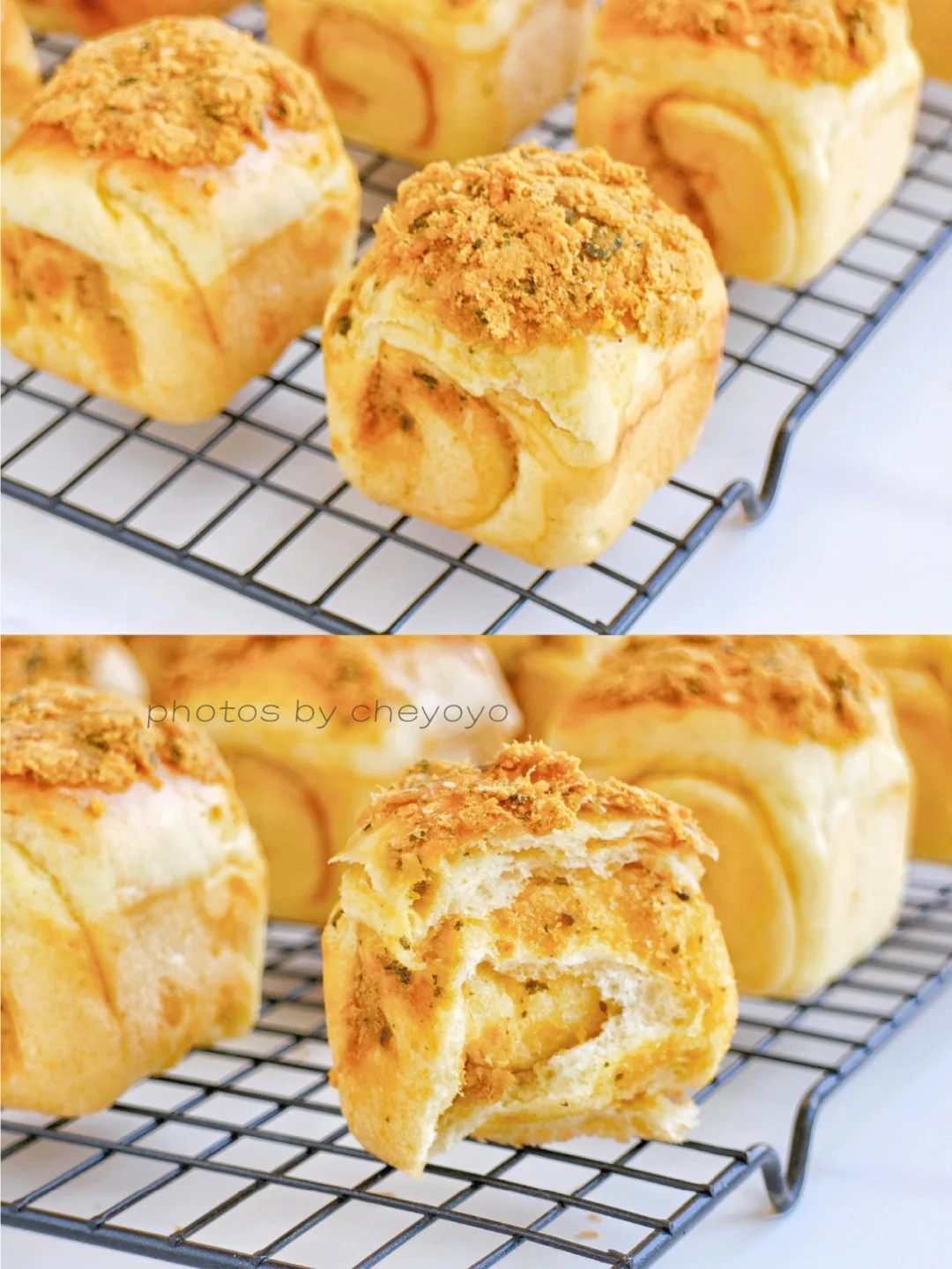没人能拒绝这个肉松小吐司!柔软细腻、咸香可口,用来做早餐再适合不过了!满满肉松吃起来真是过瘾了,我一口气可以炫两个!方子来自宝藏博主,她有超多美味小面包[集美R][集美R]
