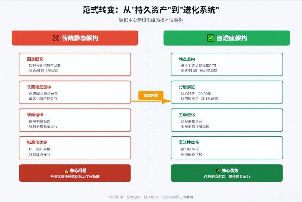 智算中心不能再被视为“持久的静态结构”,而必须成为“能够进化的自适应系统”。这不是一个修辞性的比喻,而是在技术、经济、运营三个层面都具有实质性含义的范式转变。