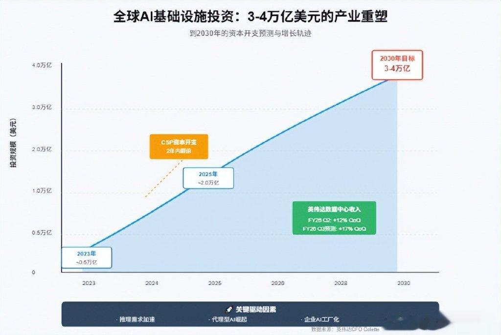 更震撼的是全球AI基础设施资本开支的预测:到2030年将达到3-4万亿美元。“即使是我们今天的CSP(云服务提供商),他们的资本支出实际上已经比两年前翻了一番。”这不是渐进式增长,而是数量级的跃迁。