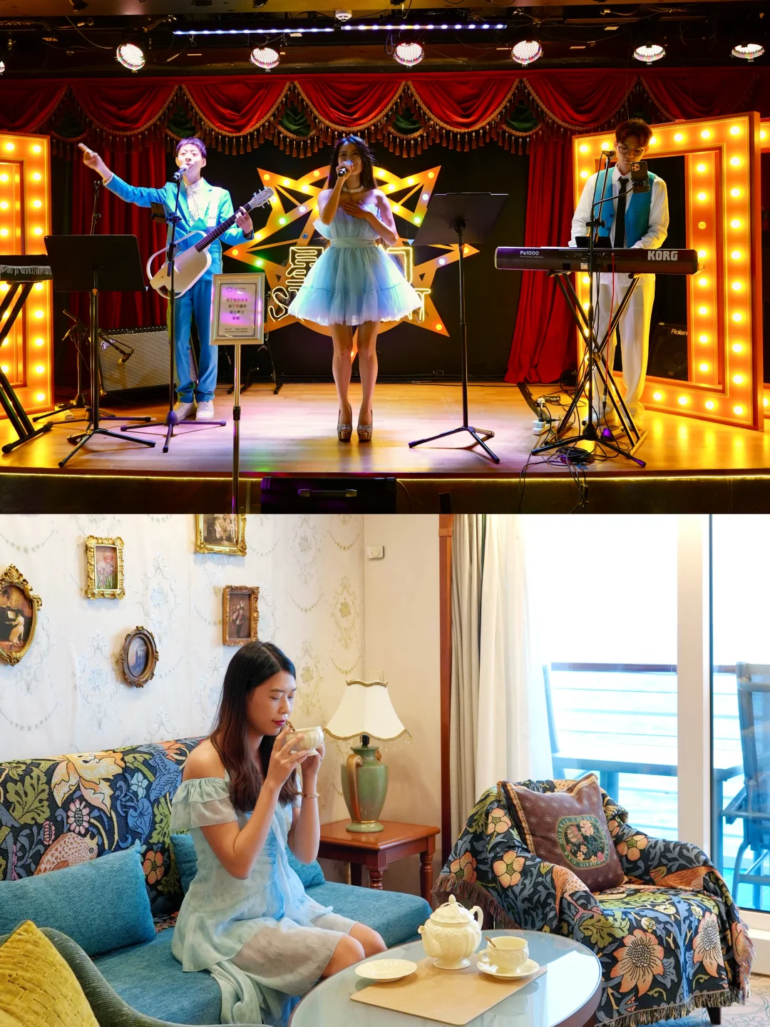 ☕️日报:每天的活动安排会详细列出来,从早到晚,表演秀、互动、影院等,根本不用担心船上会无聊,船上的工作人员也会很nice~基本上第二天大家就相互熟络了哈哈哈,E人出击,开心最重要!