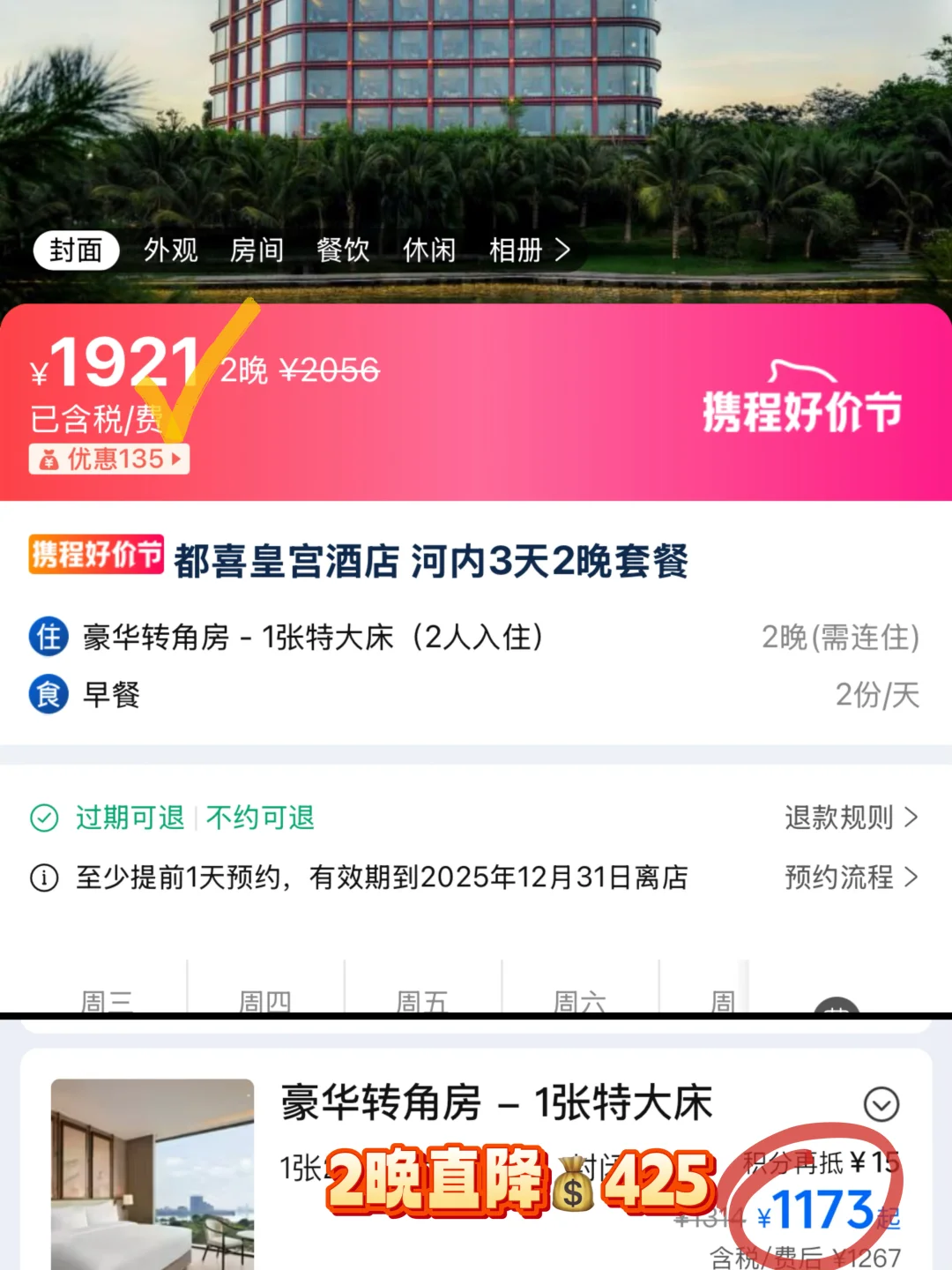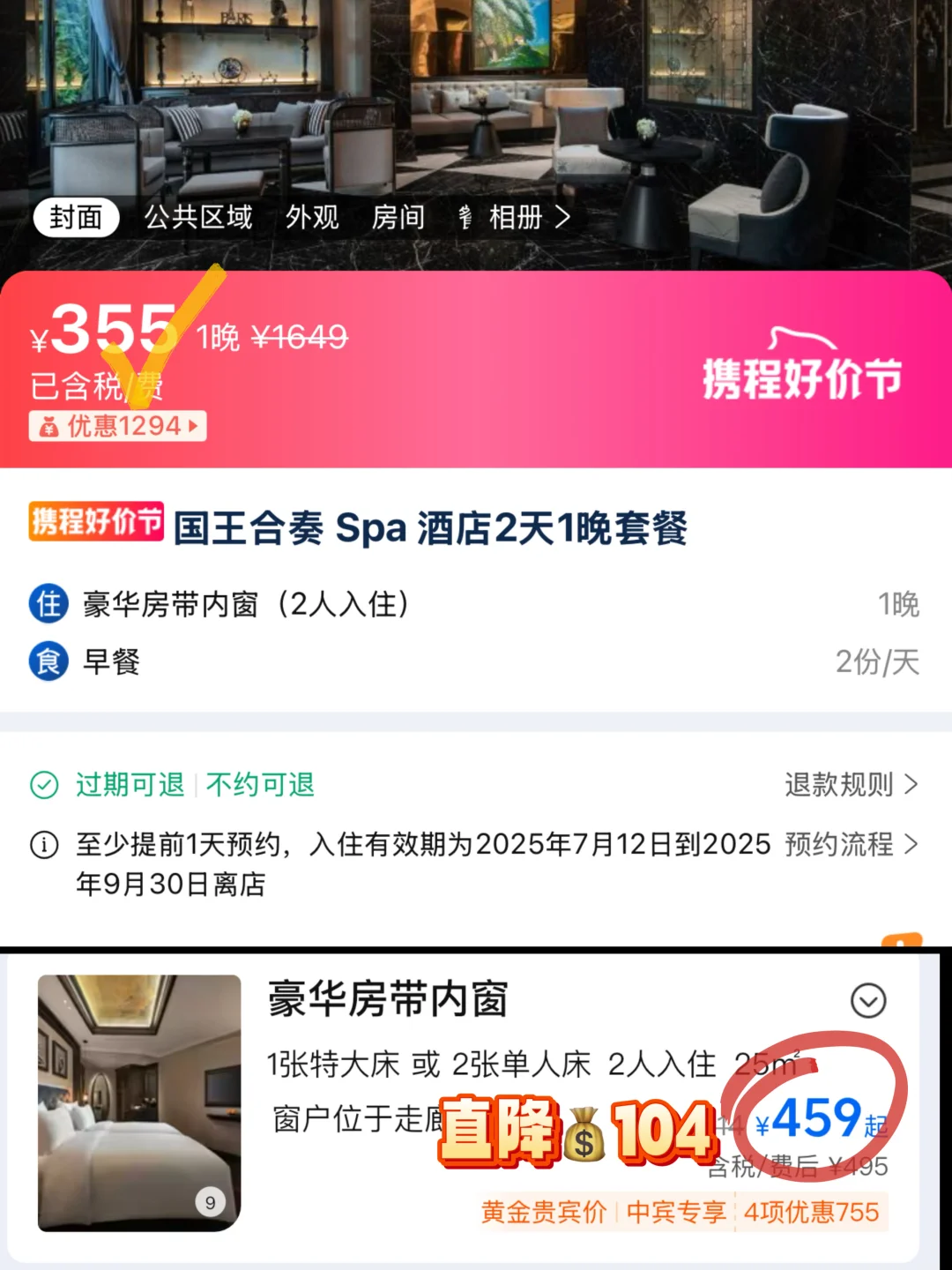✔️都喜皇宫酒店2晚💰1921(直降425)