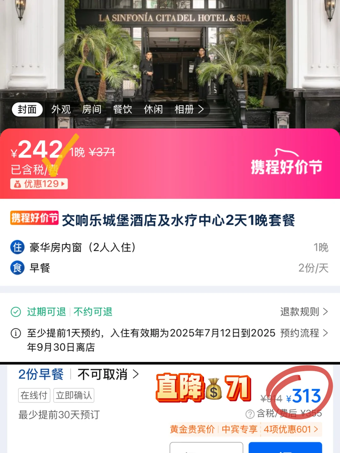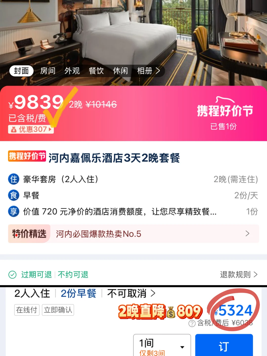 ✔️嘉佩乐酒店2晚💰9839(直降809)