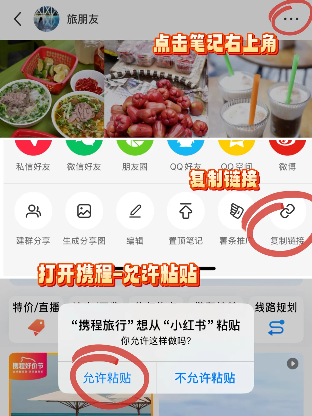 👏🏻依旧点击右上角复制本篇笔记链接,打开携程粘贴,即可参与活动(详见图2)