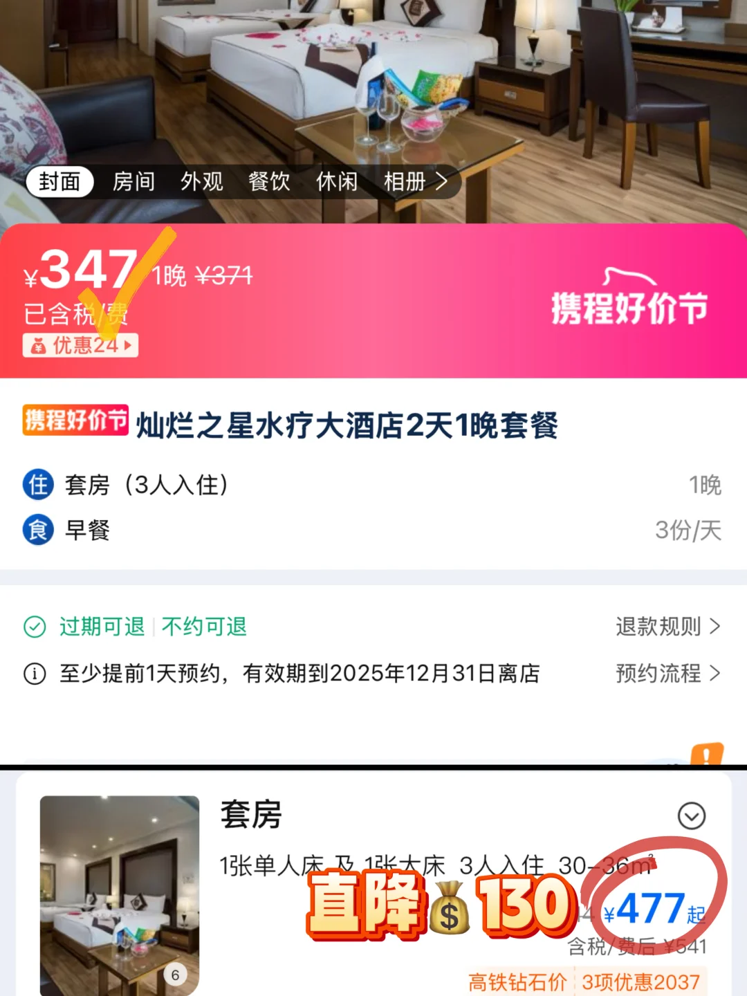 ✔️灿烂之星水疗大酒店💰347(直降130)