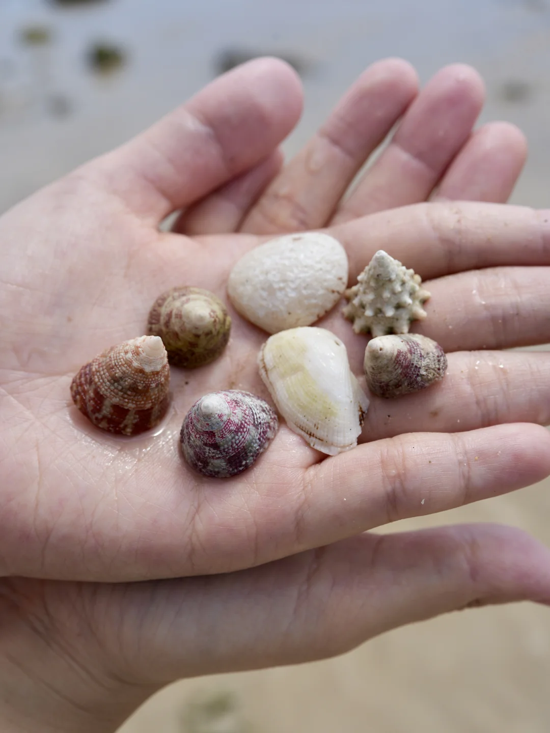 沿着沿海公路一路骑行,到达👉🏻贝壳沙滩,据说这里有很多漂亮的贝壳捡,but,我,就,这几个吧,满足了~