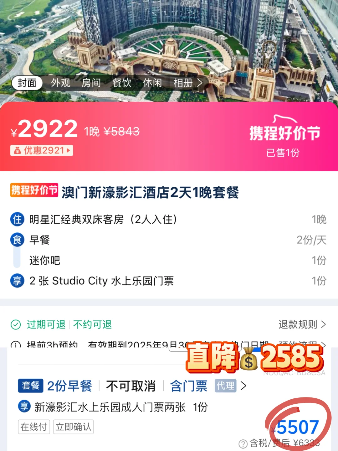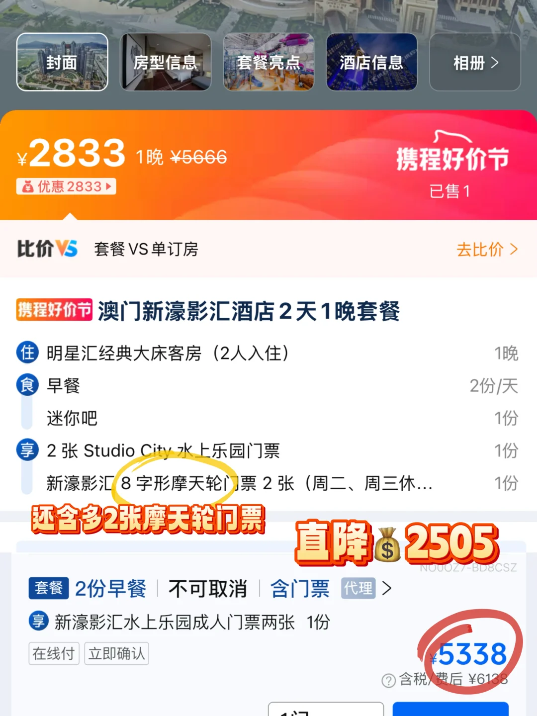 ✔️澳门新濠影汇酒店💰2833(直降2505)