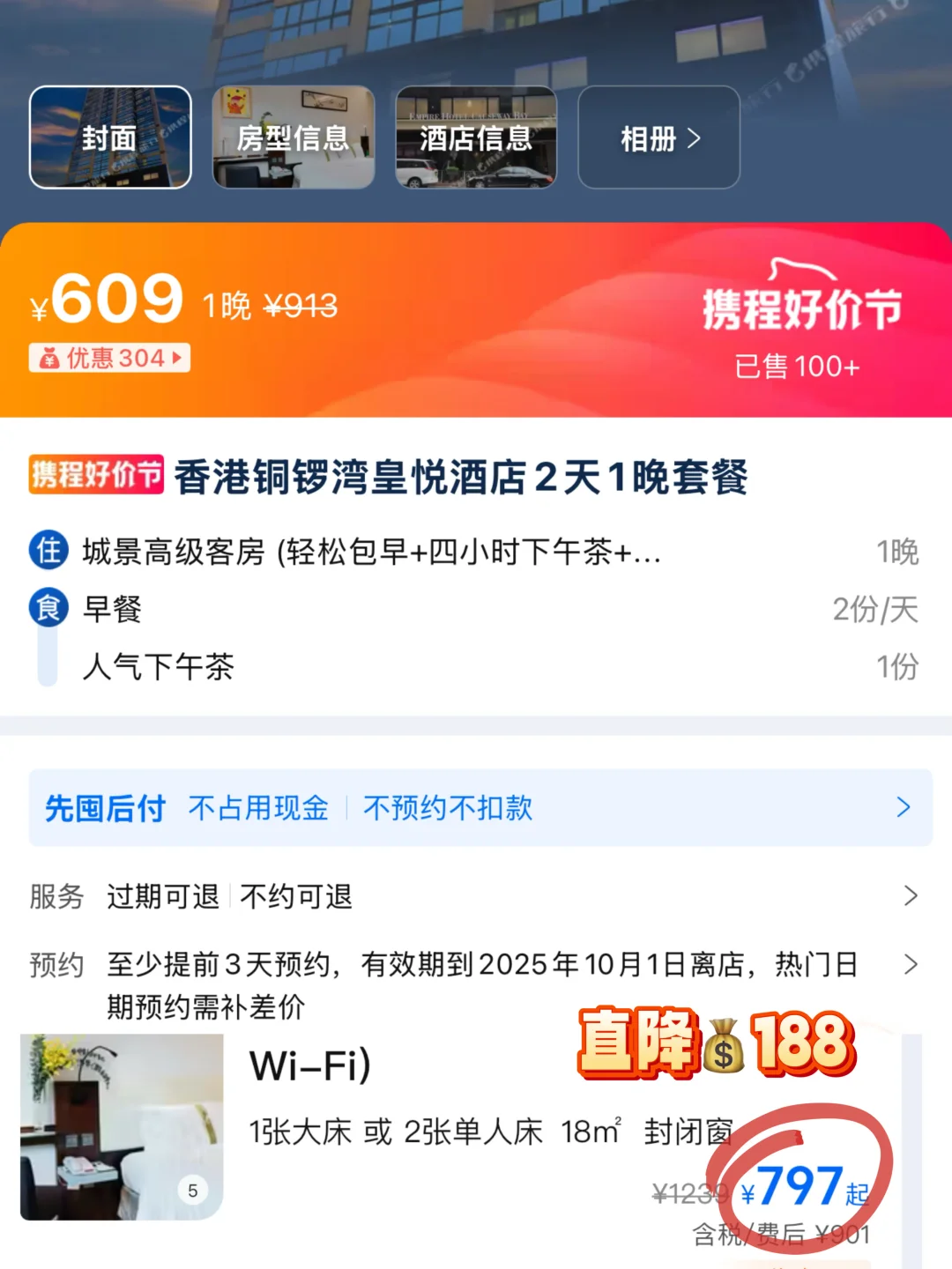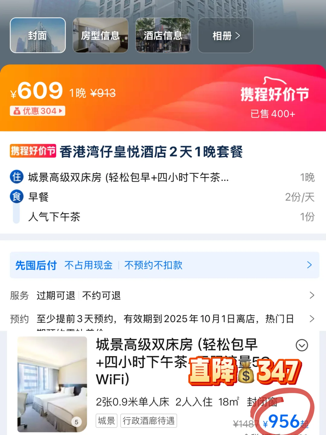 ✔️香港湾仔皇悦酒店💰609(直降347)