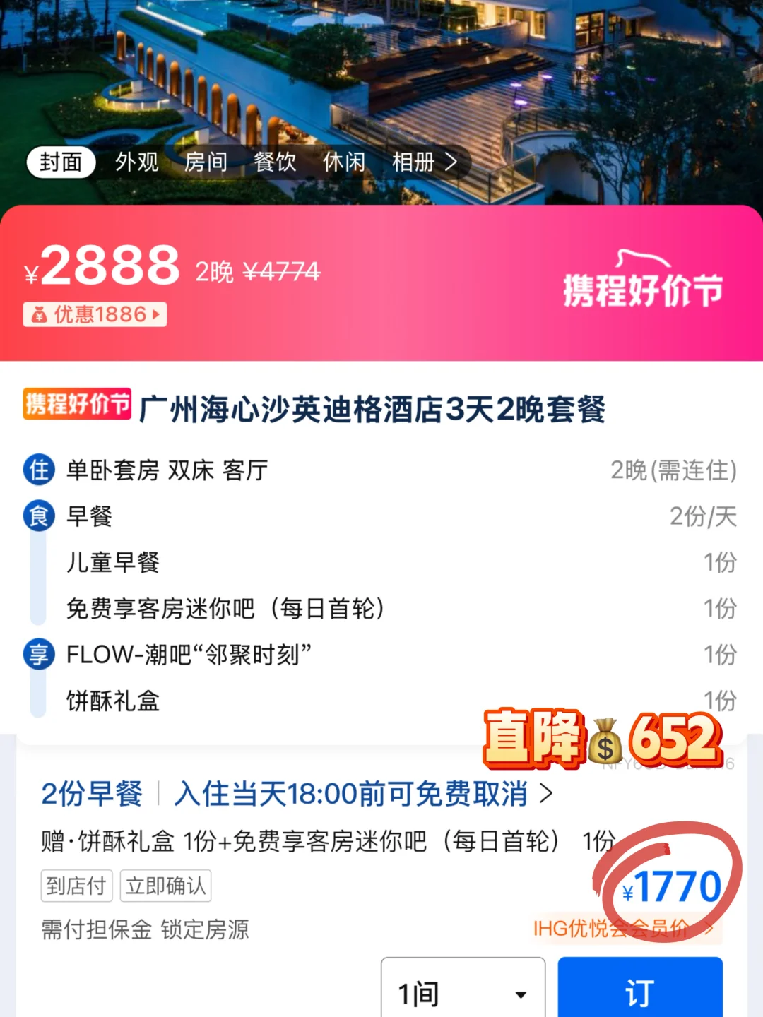 ✔️广州海心沙英迪格酒店2晚💰2888(直降652)