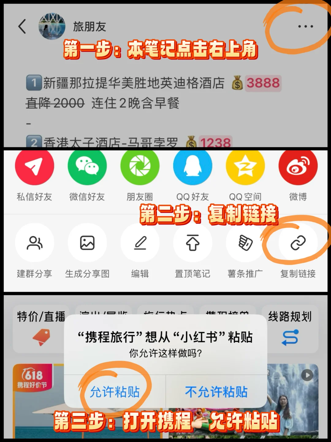 ⭕领券方式(见p2):右上角分享→复制笔记链接→打开携程→允许粘贴