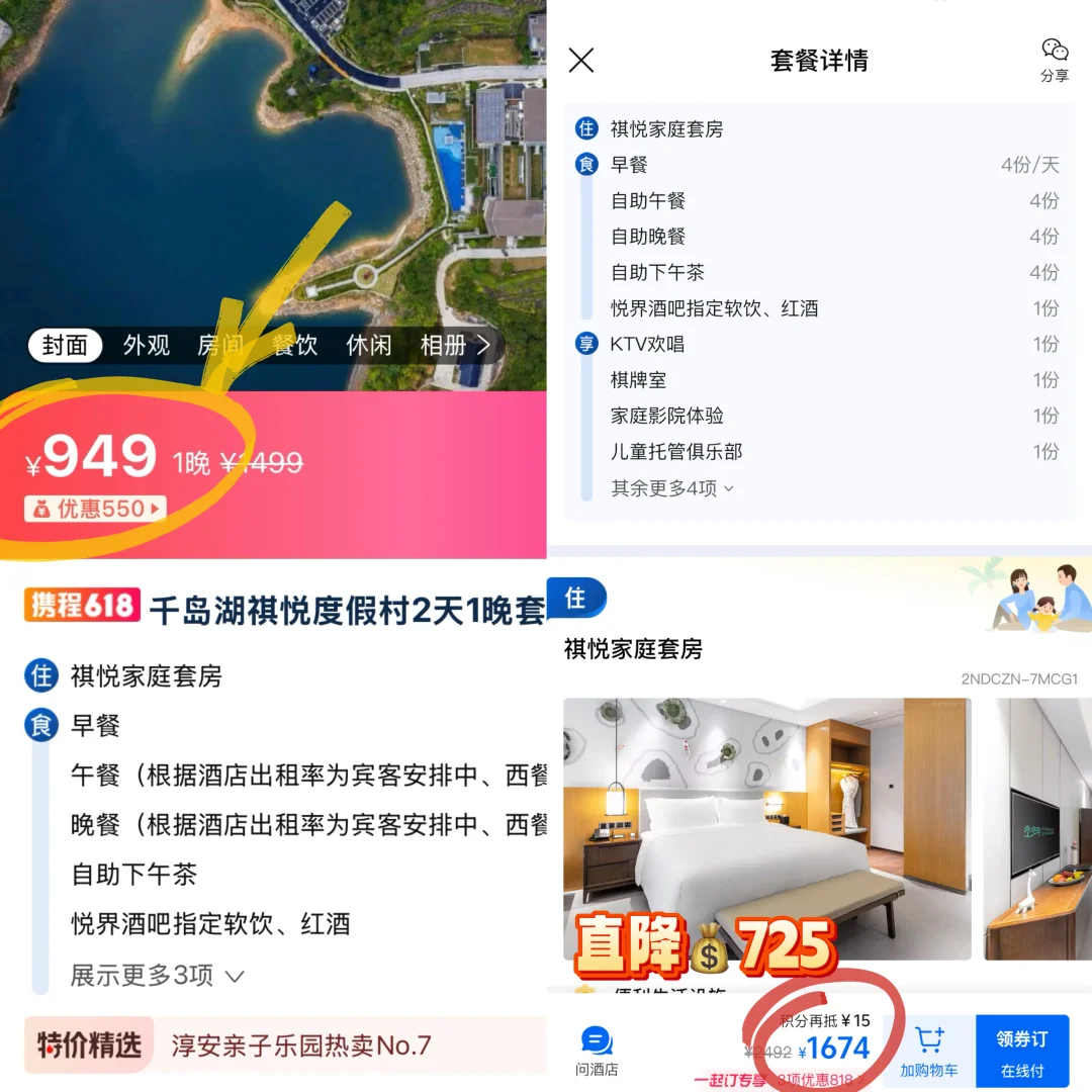 2️⃣千元神券随心领,完成浏览、加购等任务可获得领奖次数用于兑换奖池内任意优惠券,满2599-80,最高减800的酒店套餐阶梯满减券等你来兑