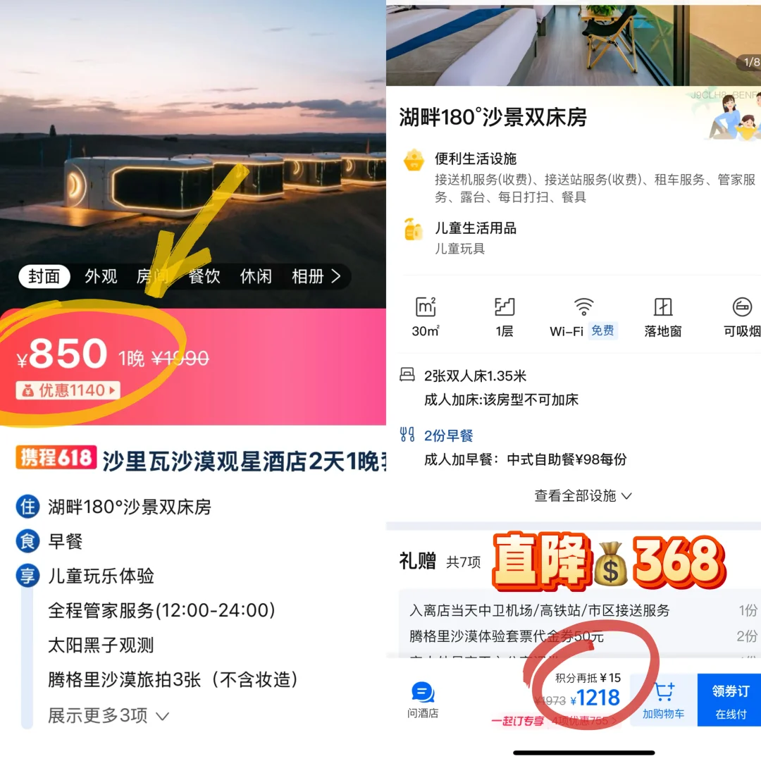 💰850,湖畔180°沙景房赠旅拍,住进沙漠里的观星体验