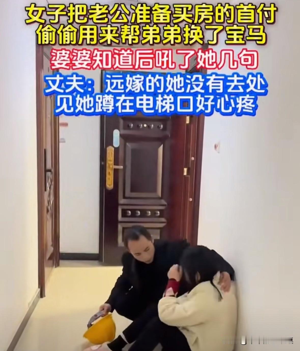 女子把丈夫攒的钱,全部拿给弟弟买宝马了! 公婆知道后非常生气,于是训斥了女子几句! 女子觉得非常委屈,后悔自己远嫁,认为帮弟弟是应该的! 丈夫回到家后,看到妻子自己躲在门口,知道详细情况后,也没有恶言相向,只是把妻子拦在怀里安慰她! 这些钱原本是丈夫想买房子付首付的钱,现在都没了。 这样的“伏地魔”还要她干什么!真把你弟当儿子养了,你怎么没想过你老公不容易啊,你想过你老公攒这些钱有多不容易吗。 你老公是真的爱你,如果换个人肯定就火冒三丈了,希望你好好对他。伏弟魔