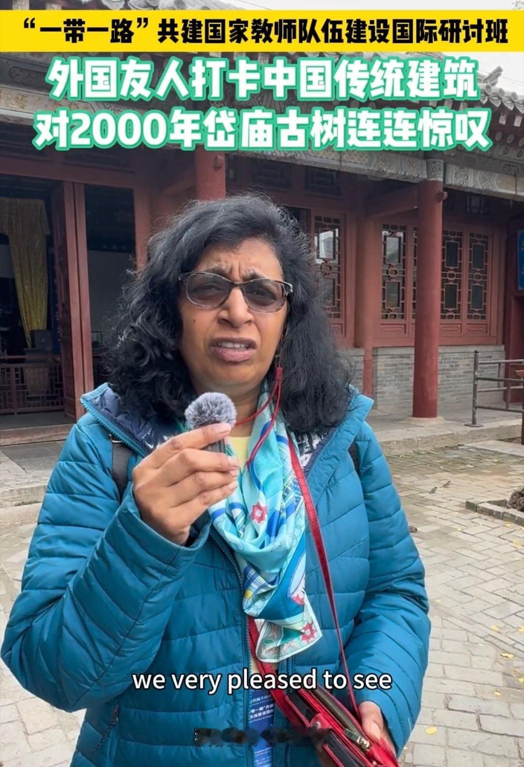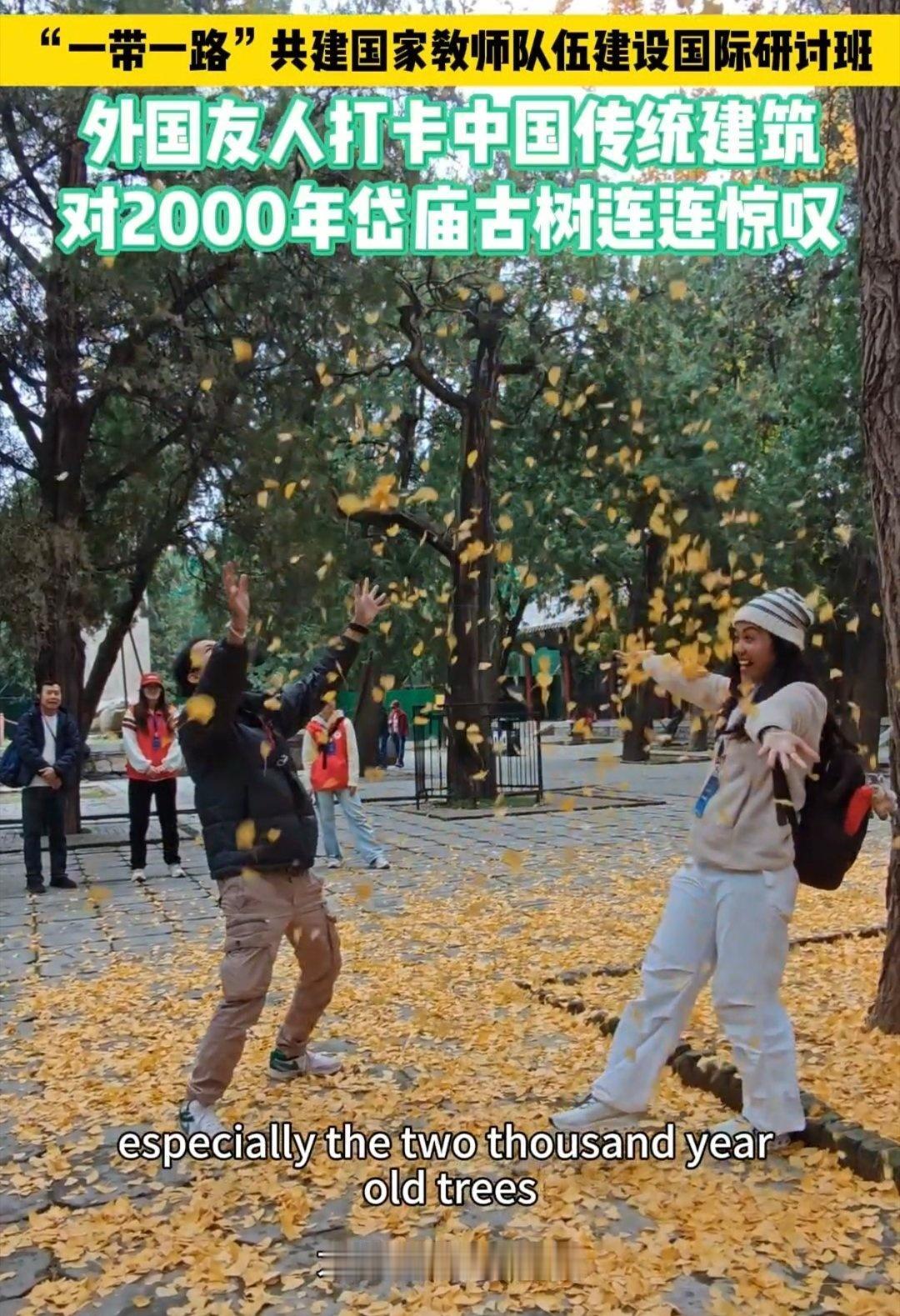 【山东岱庙给世界讲中国故事 】跟着泰山科技学院走进岱庙 岱庙汉柏撑着千年苍劲,迎“一带一路”共建国家友人,红墙映古柏、金瓦衬秋光,碑刻藏着岁月密码,每缕风都裹着东方厚重,中外同框定格文明共鸣✨(via:dy.泰山科技学院)