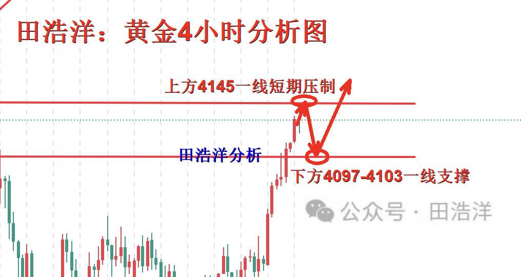 1、黄金4117-4125一线多,4097-4105一线继续多,止损4088,目标4145-50一线,破位持有!!!