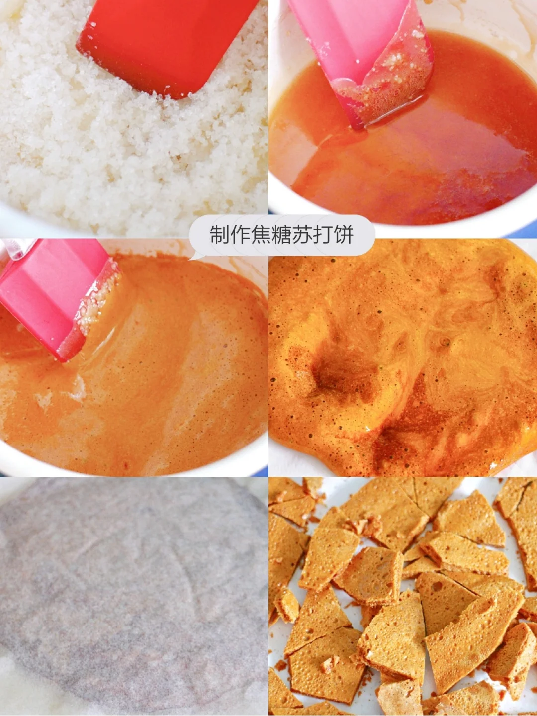 ② 立即放入小苏打,不停搅拌,此时焦糖会迅速膨胀;