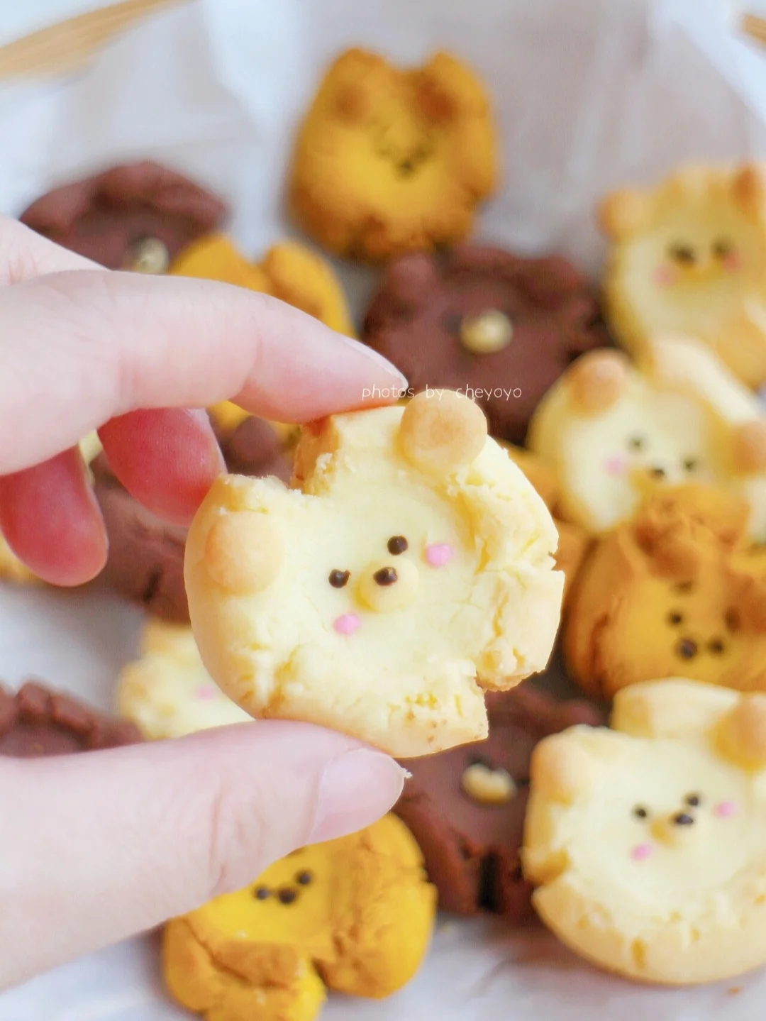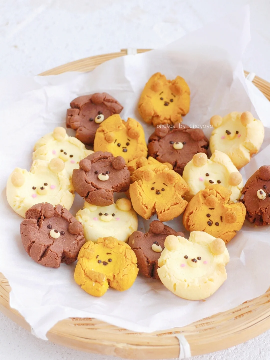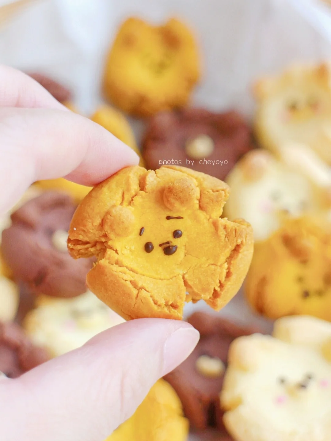 这个加了熟蛋黄的玛格丽特小饼干,又香又酥,放进嘴里轻轻一抿就化开了,好吃到停不下来。小白熊、小棕熊、小熊维尼,做三种卡通造型,可爱值超标有木有~🐻