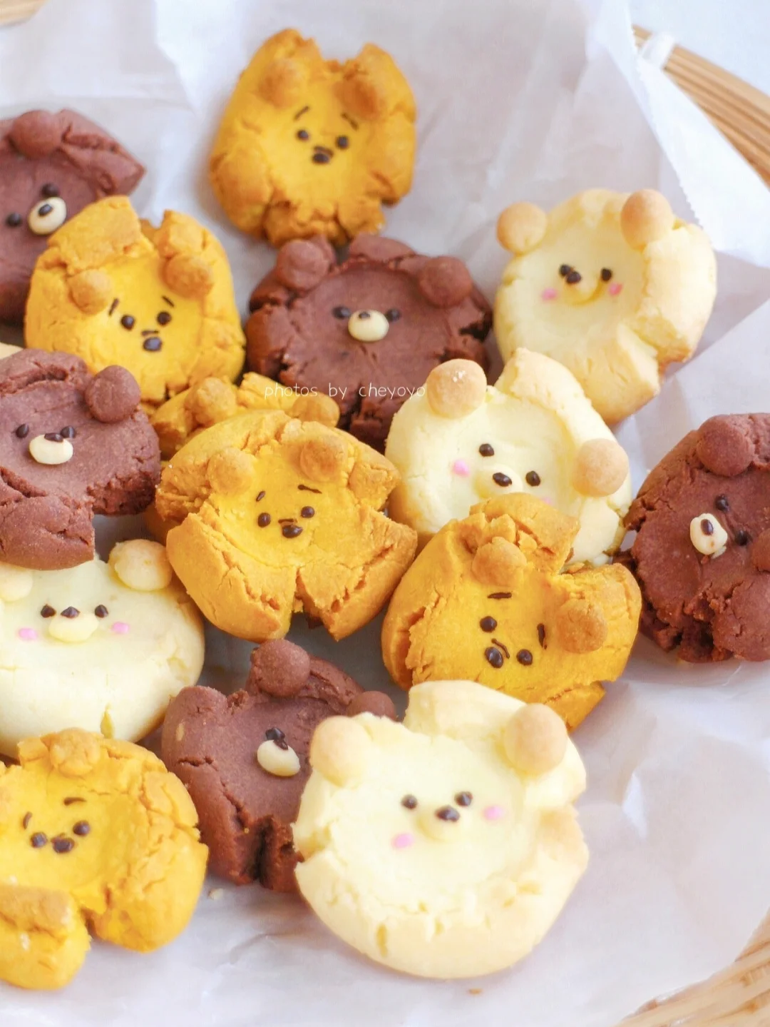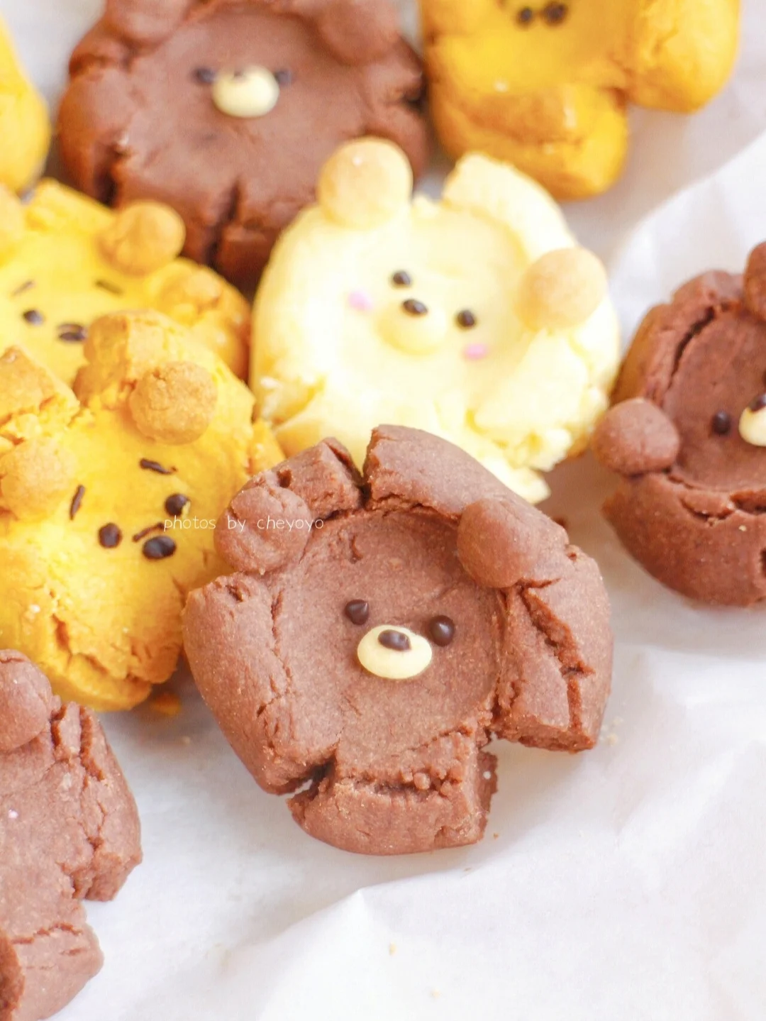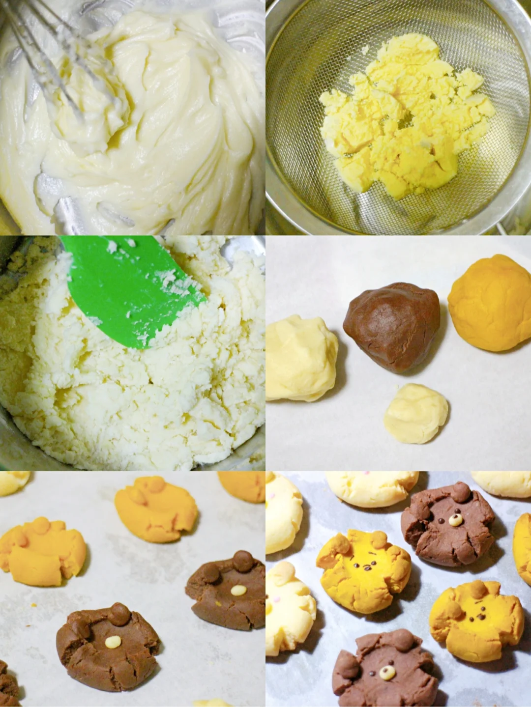 这个加了熟蛋黄的玛格丽特小饼干,又香又酥,放进嘴里轻轻一抿就化开了,好吃到停不下来。小白熊、小棕熊、小熊维尼,做三种卡通造型,可爱值超标有木有~🐻