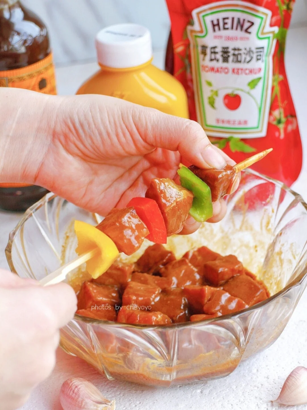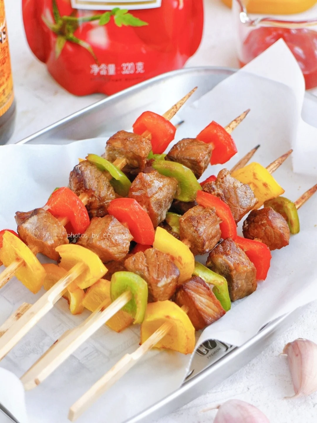 没有烤串和啤酒的夏天是没有灵魂的!一顿烤箱版家庭美式BBQ简直再美好不过了🍡🍡🍡牛肉入口鲜嫩多汁,搭配爽脆的彩椒,健康美味又解油腻。而且牛肉脂肪含量低,多吃点也不用担心发胖~[萌萌哒R]