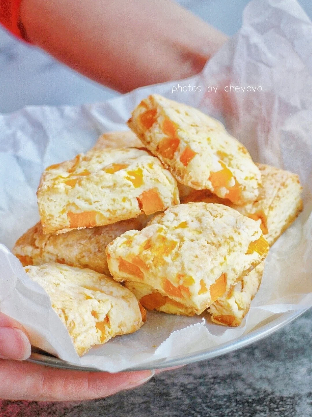 东北的温度越来越低了,买上一块热乎乎的烤红薯揣在怀里,又能暖手又能抚慰嘴巴~用红薯做了些司康,甜丝丝的,热fufu的,一口气能吃下好几块[色色R]